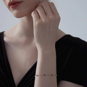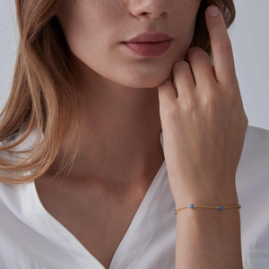 The Evil Eye by Perimade station bracelet is an iconic choice for daily wear, offering delicate links that feel both modern and versatile. Classic link bracelets in 18k yellow or rose gold add subtle elegance and can be worn alone or layered for added dimension. Slender gold bangles also bring effortless polish to any look. For those who favor a softer look, the Floral by Perimade flower bracelet offers graceful elegance with a subtle modern touch. Each design transitions seamlessly from day to evening, allowing you to mix metals and textures to express your personal style.