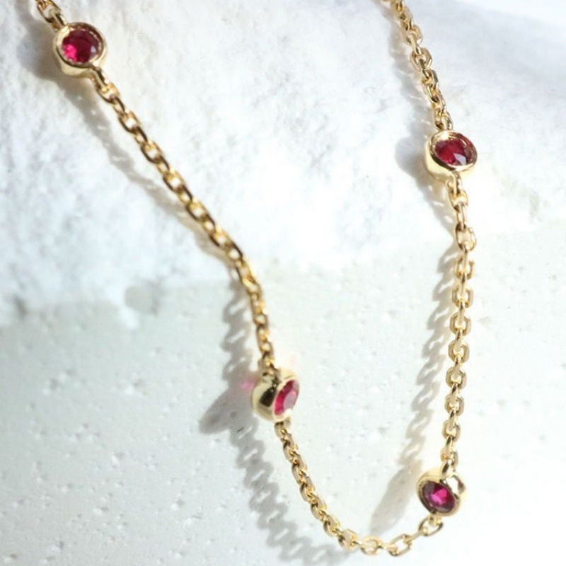 Embrace elegant order with this gold-plated bezel-set red stone station bracelet—scattered gemstone stations, delicate chain, and secure bezel setting. Its minimalist, refined design blends rich color with daily comfort, ideal for versatile styling.