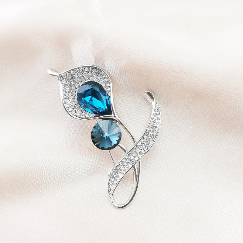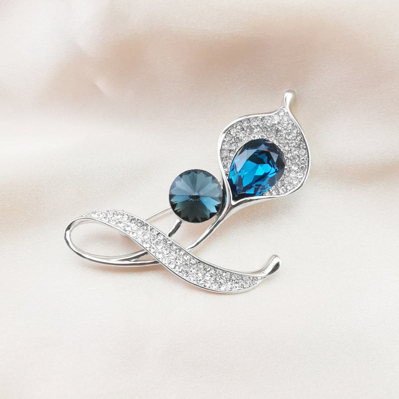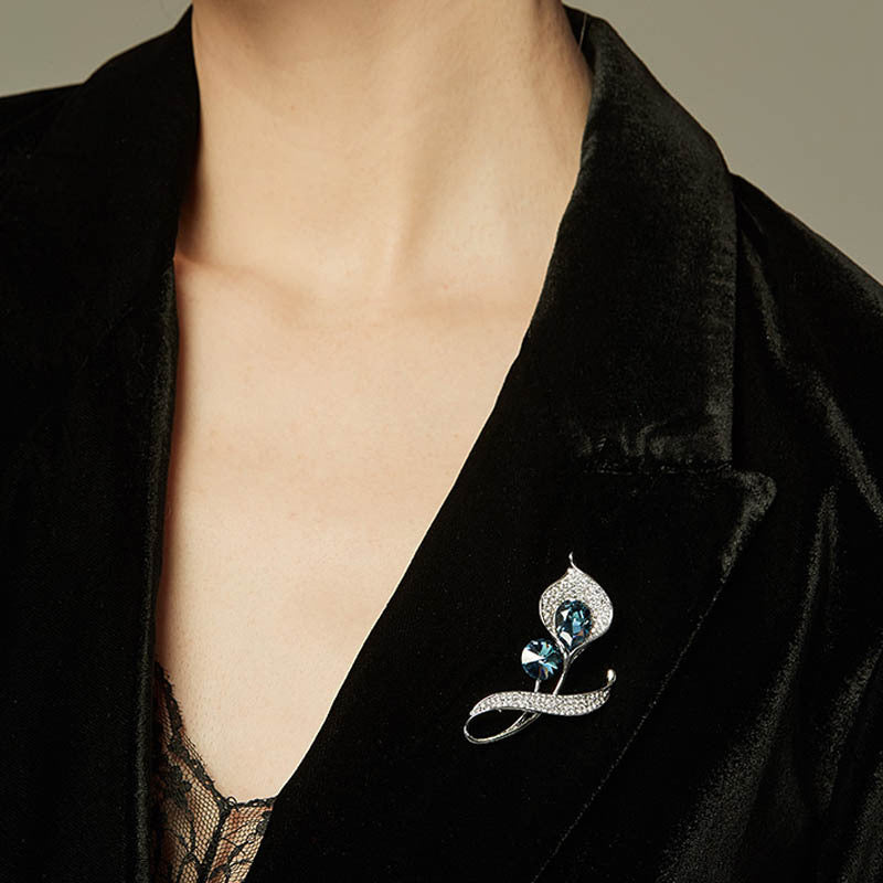 Each piece in this brooch collection is meticulously crafted to capture the allure and elegance of calla lilies, the iconic flowers of timeless beauty. With shimmering blue crystals and delicate pavé - set accents, it transforms the classic bloom into a wearable work of art, bringing a touch of refined charm to any ensemble.
