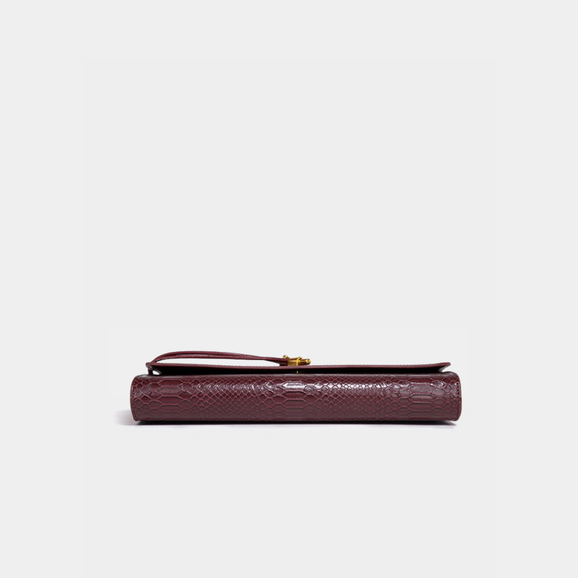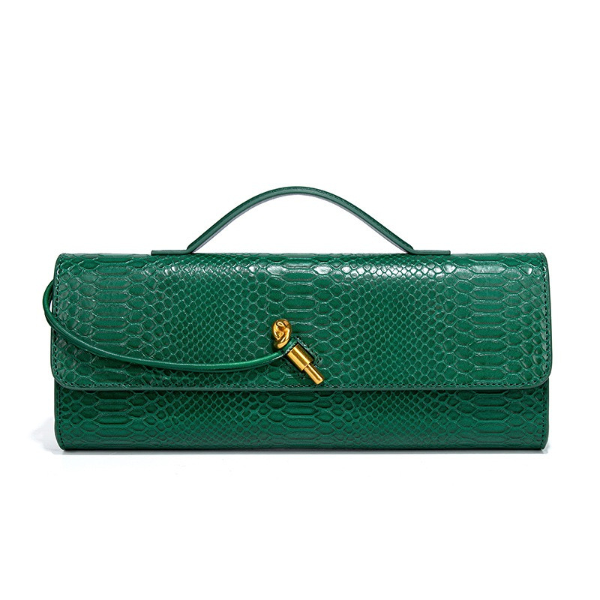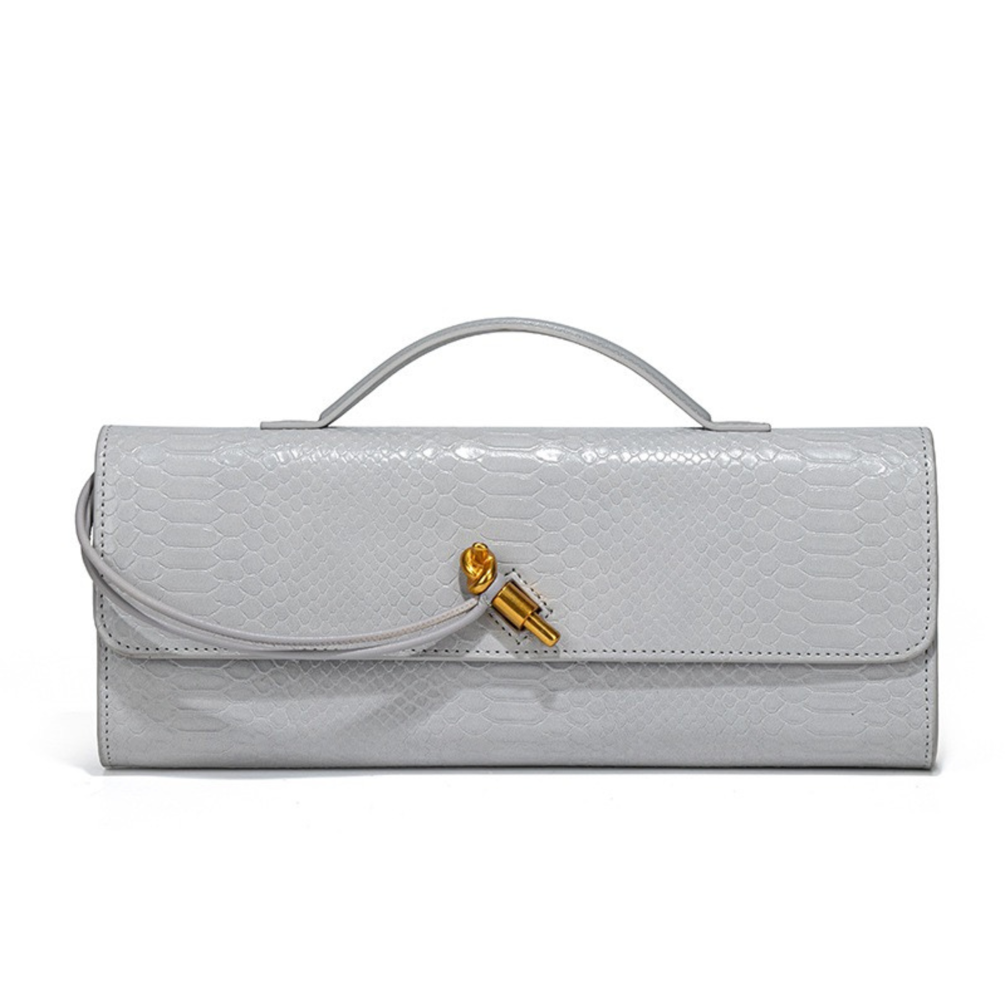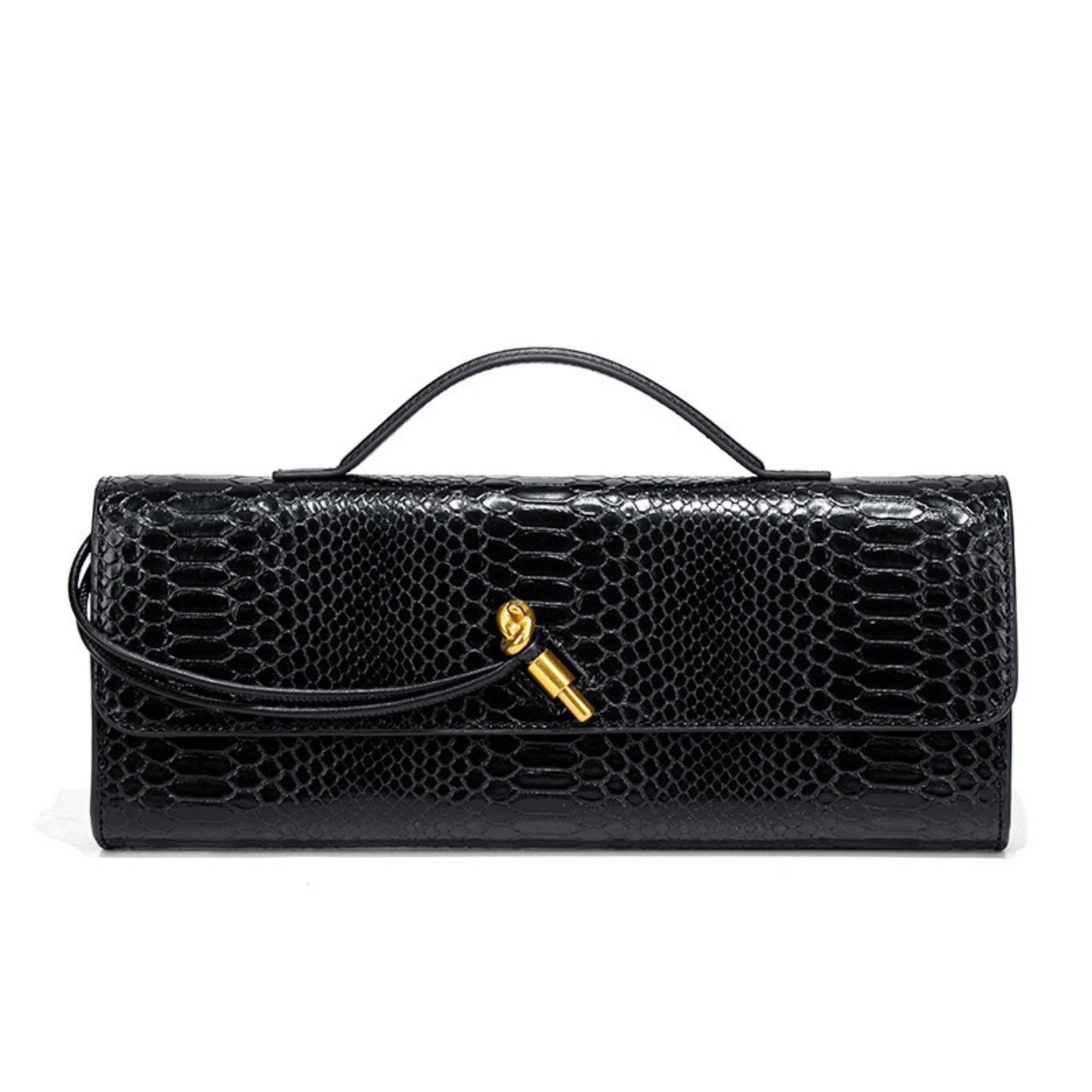 Elevate your style with this handcrafted leather clutch, featuring a timeless crocodile leather pattern and luxurious gold twist lock. Designed with versatility in mind, it can be carried as a chic handbag or worn crossbody for effortless sophistication. Perfect for evening outings, weddings, or any occasion where elegance meets practicality. The rich texture and refined craftsmanship make it a lasting statement piece in your collection.