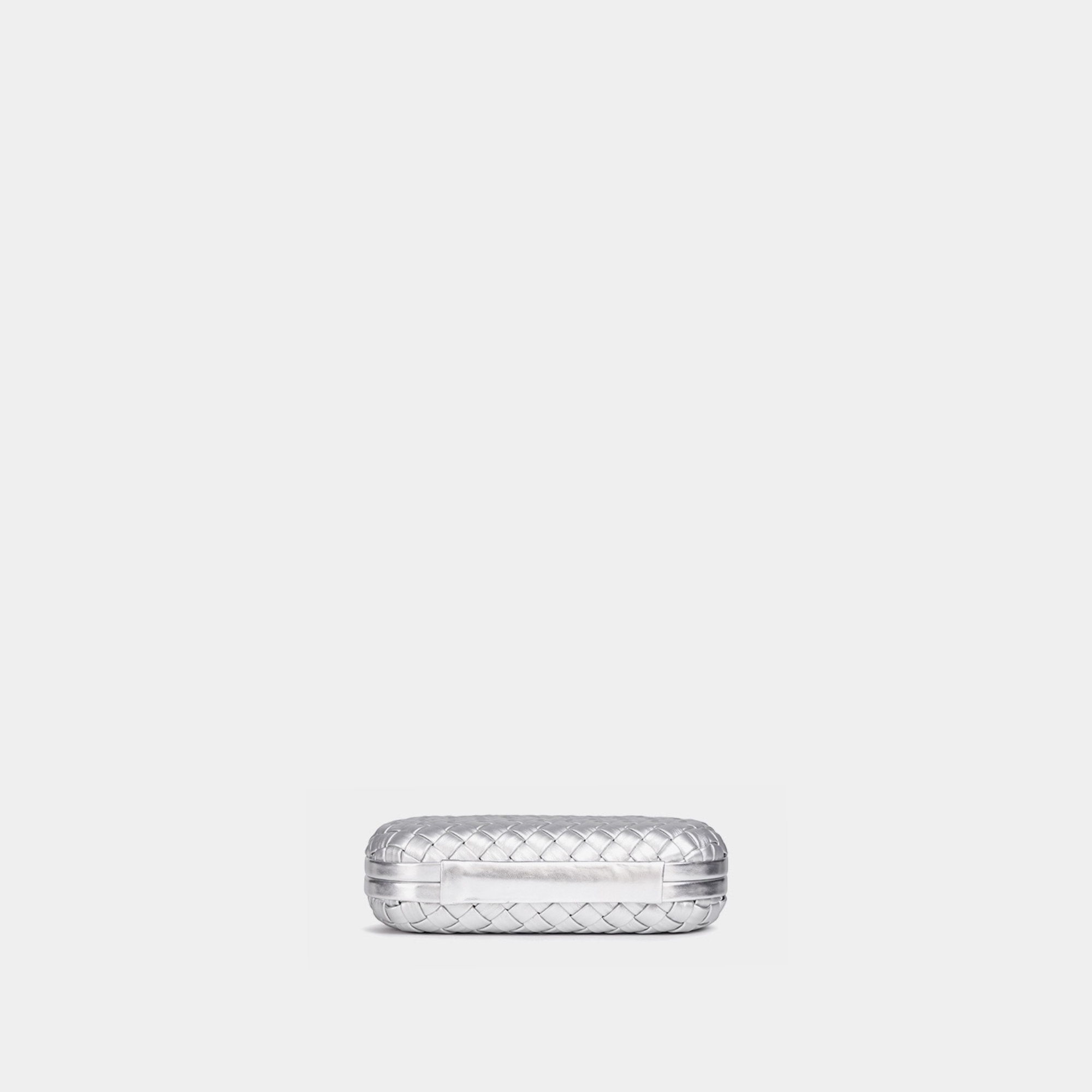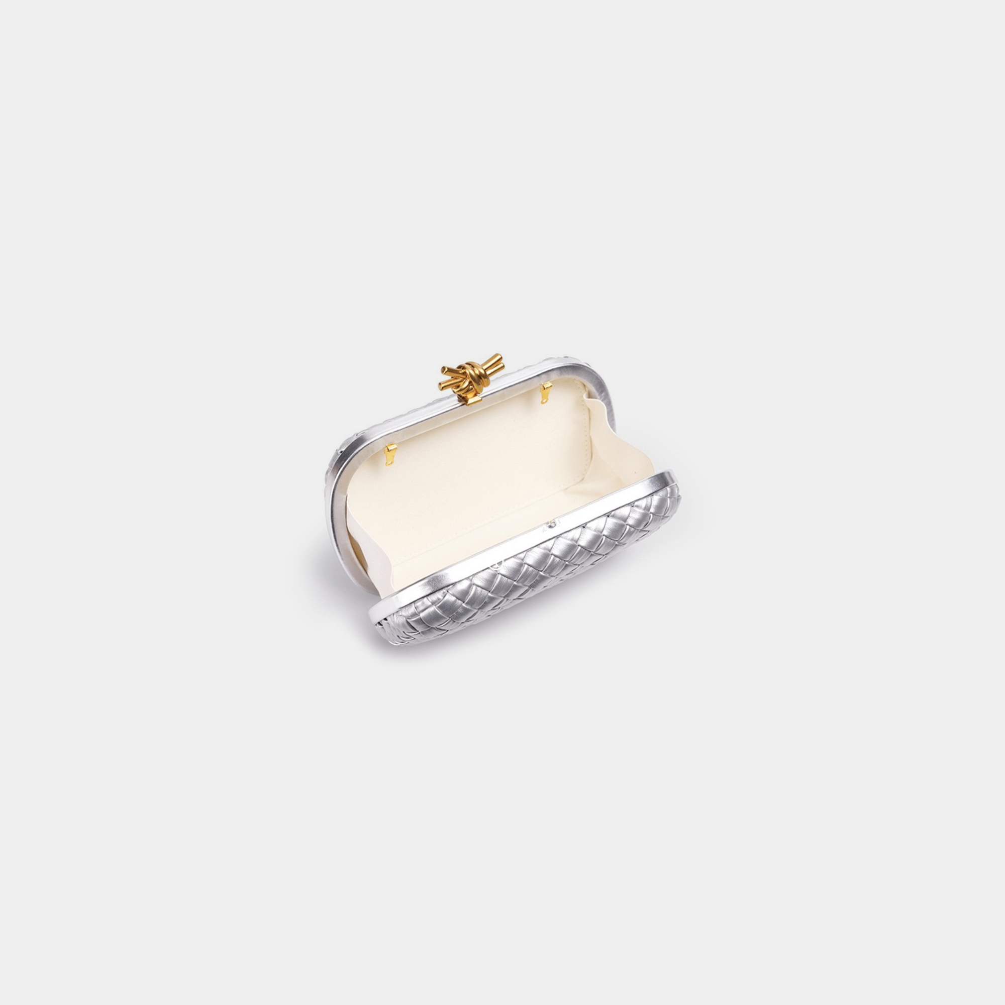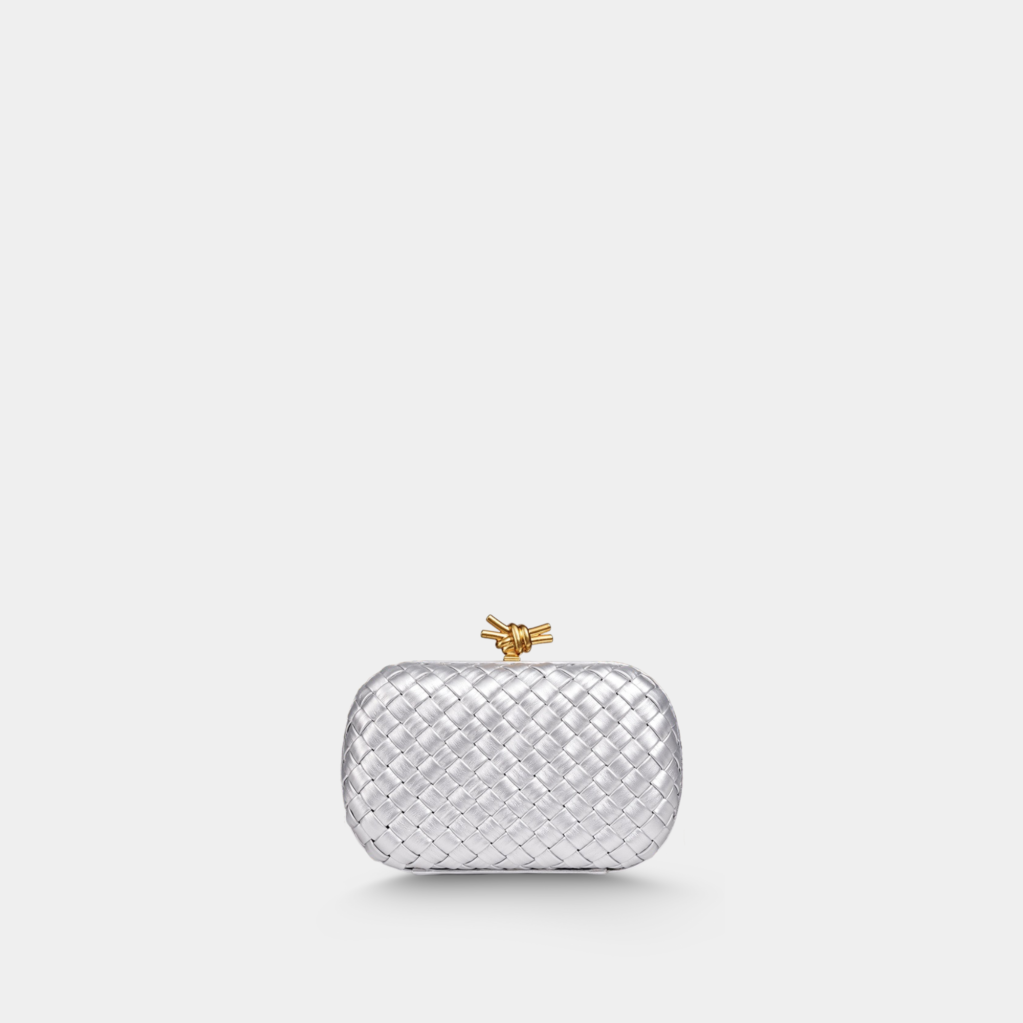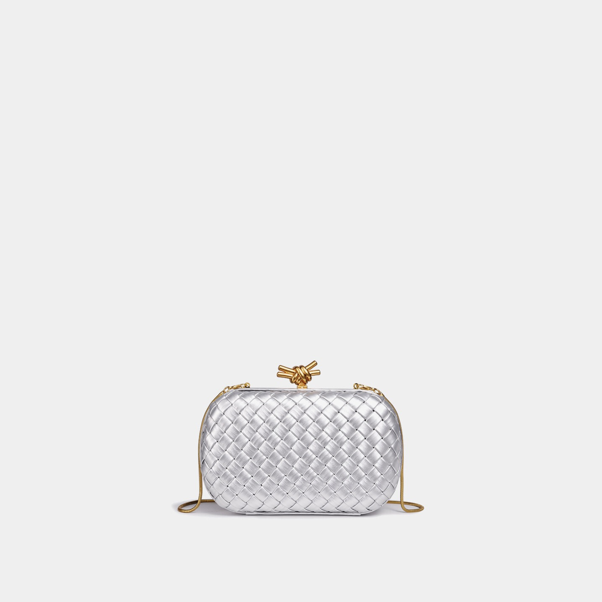 This woven leather clutch is a modern statement of elegance and style. Handcrafted with a sleek texture and finished with a gold knot clasp, it combines contemporary design with a touch of glamour. The structured oval shape opens to a smooth, lined interior that fits your phone, cards, and other small essentials. A detachable gold chain strap allows you to wear it as a clutch or crossbody, making it perfect for evening events, parties, or formal occasions.
