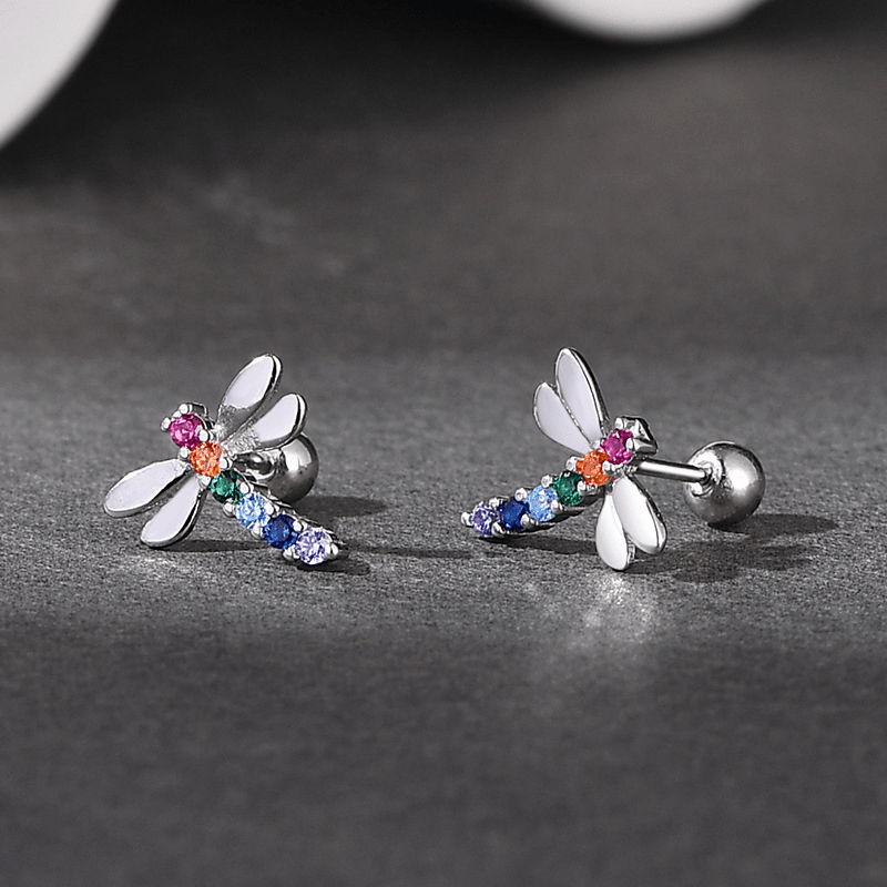 Tiny Small Rainbow Dragonfly Stud Earrings