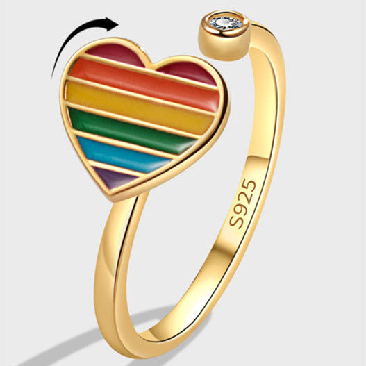 Rainbow Heart Anxiety Fidget Spinner Ring