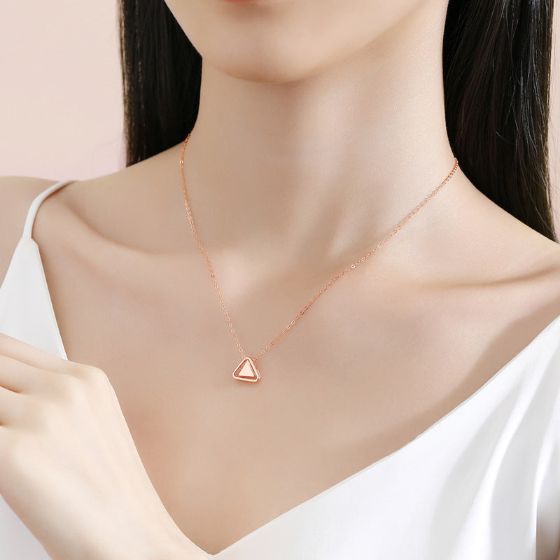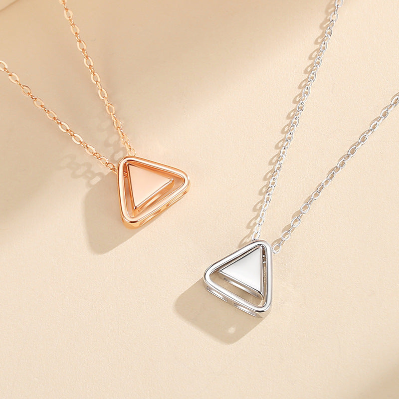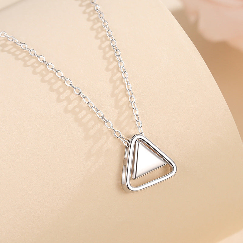 Embrace minimalist elegance with our double - triangle necklace. Crafted in polished silver, its layered geometric design merges clean lines with subtle depth, making it a versatile statement piece for daily wear or formal events.