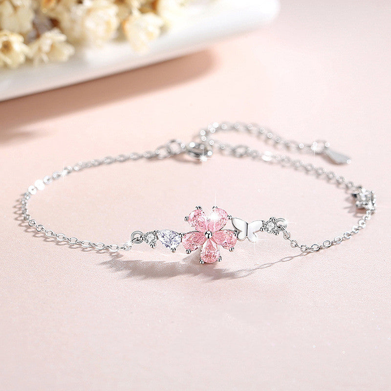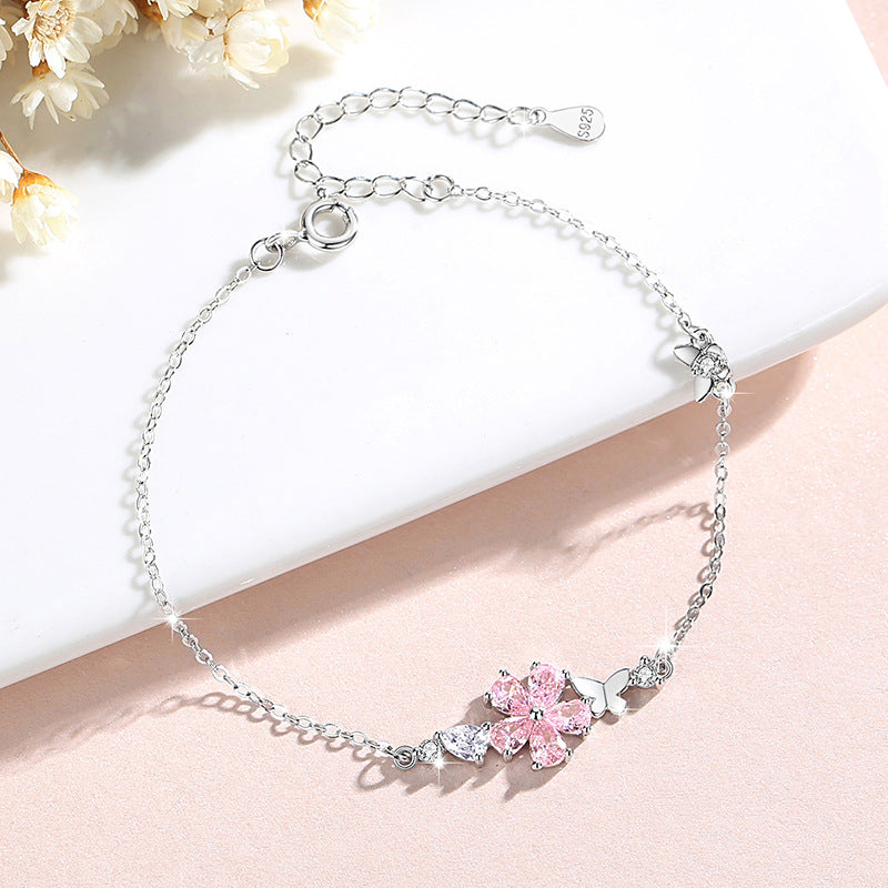 Pink Cherry Blossom Butterfly Charm Bracelet
