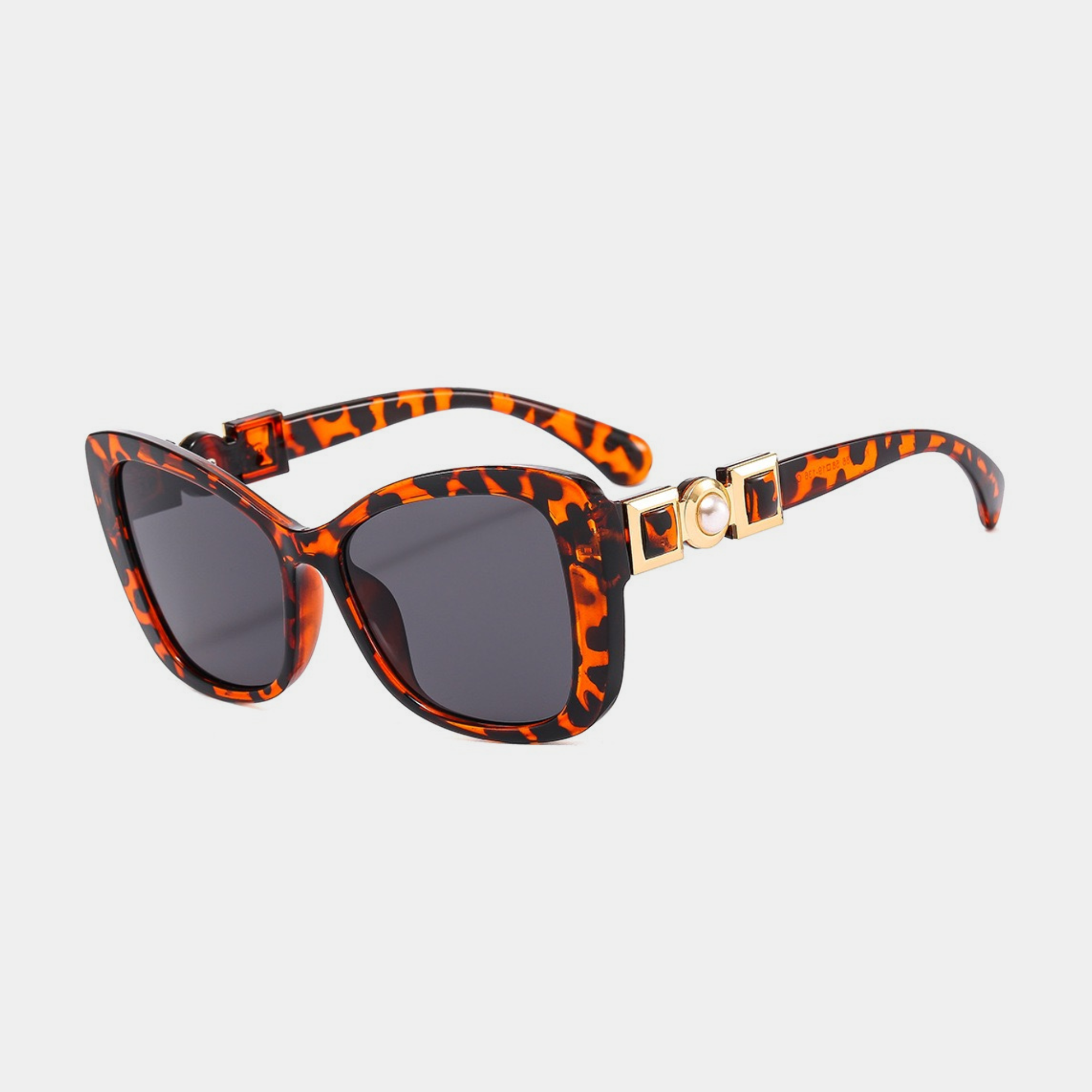 Elevate your look with these luxury-inspired cat eye sunglasses, featuring a glossy black frame paired with elegant gold hardware and a chic pearl side detail. Designed for women who love timeless glamour with a modern twist, these shades instantly add sophistication to any outfit—whether you're heading to brunch, on vacation, or walking the city streets.
