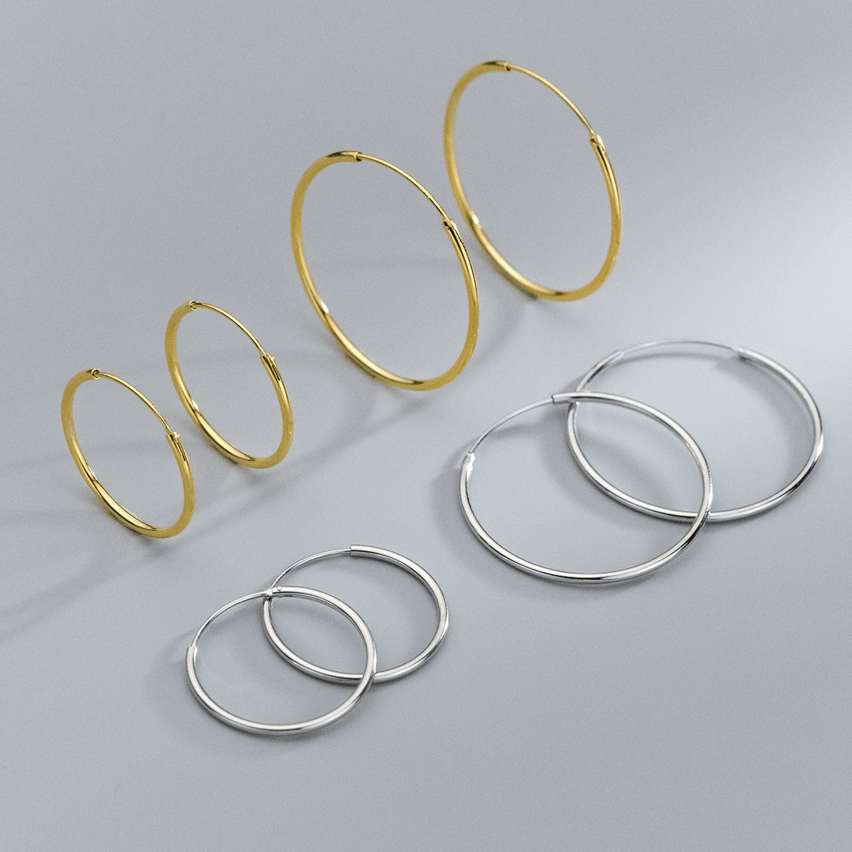 Upgrade your everyday look with this versatile set of hoop earrings in multiple sizes. Designed for effortless styling, each pair features a sleek, minimalist shape that can be worn alone or stacked for a layered look. Crafted from sterling silver with a polished gold, silver or black finish, these hoops are lightweight, comfortable, and perfect for daily wear. Whether you prefer subtle or bold, this set gives you the flexibility to match any outfit or mood.