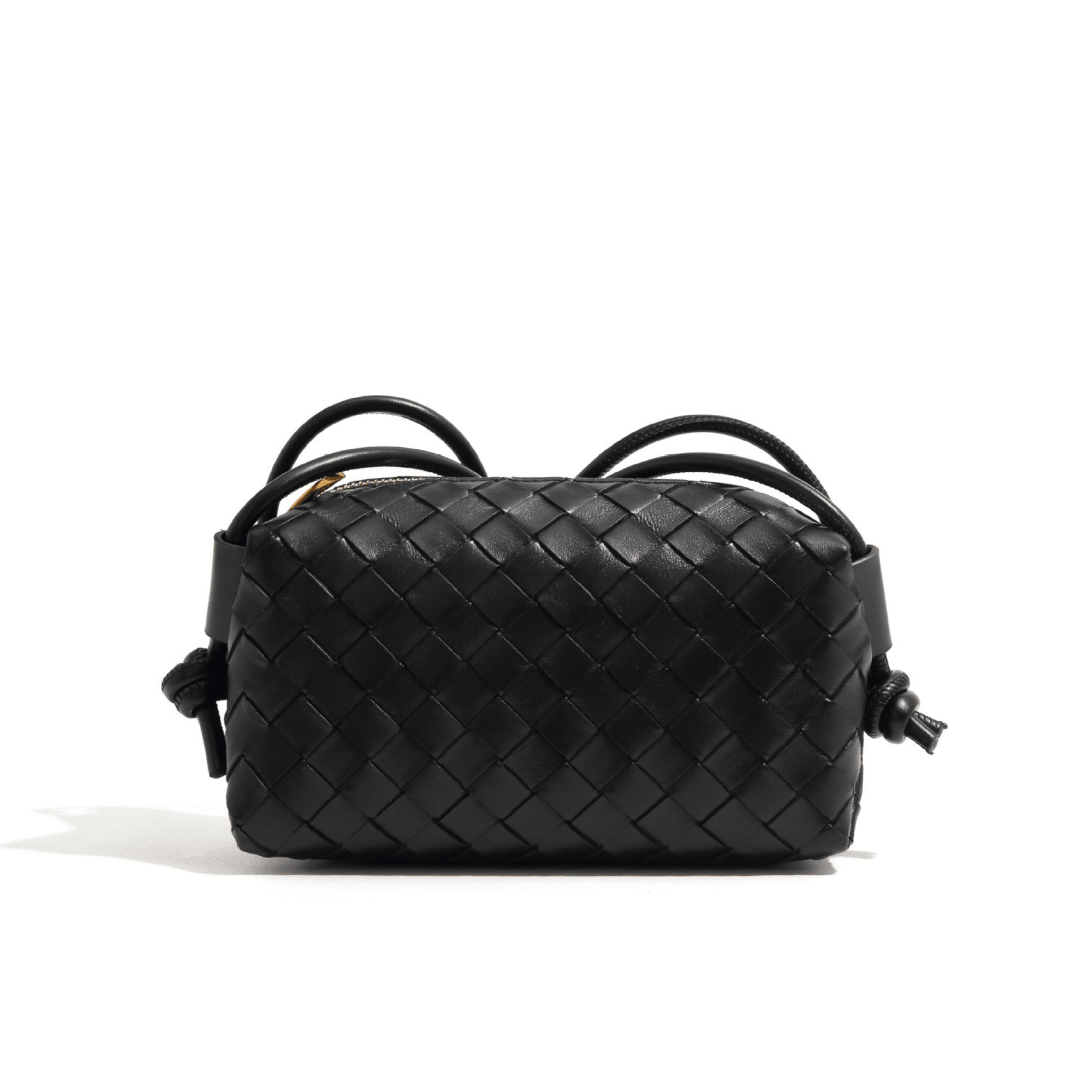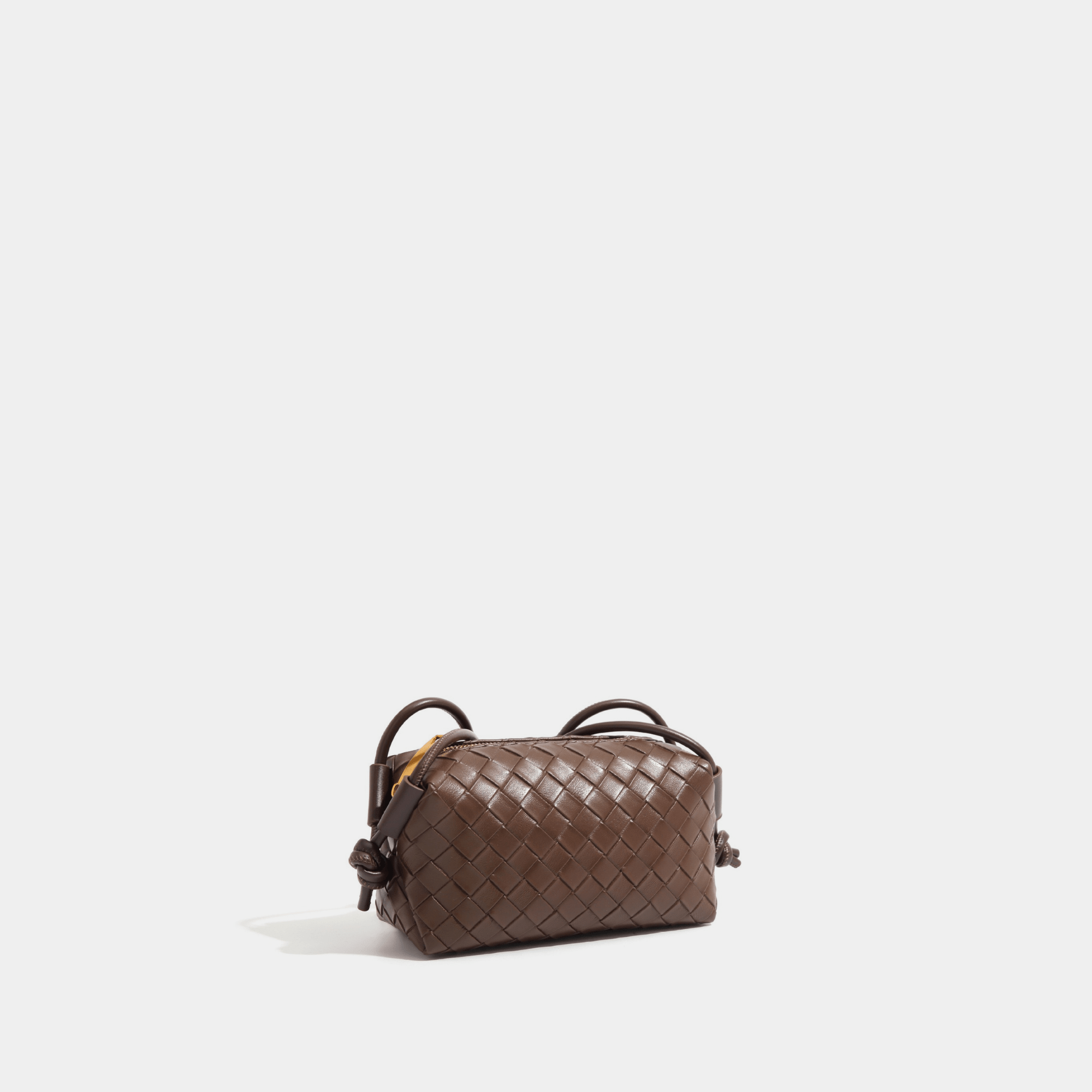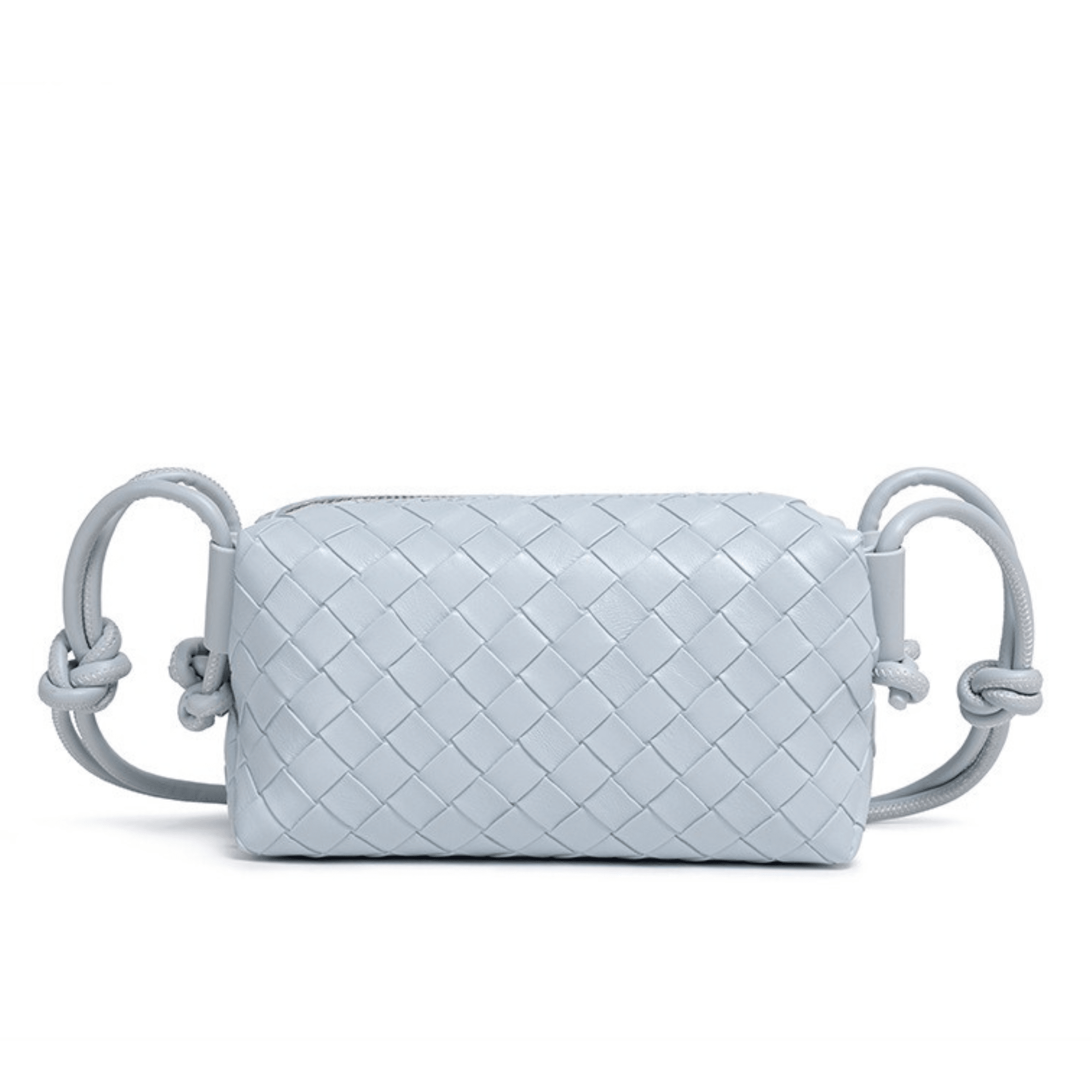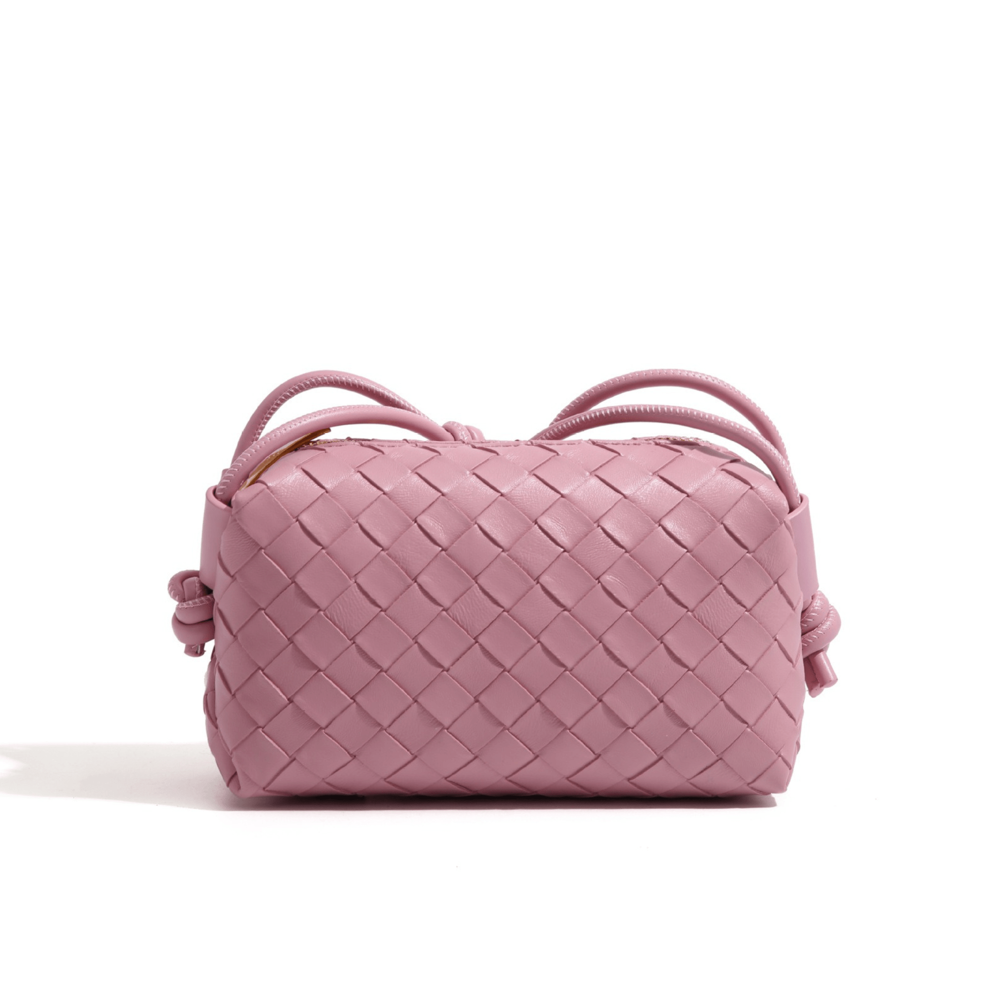 This mini woven leather bag features a rich tone paired with a tightly woven texture, offering a clean and elevated look. The structured silhouette gives it a more defined shape compared to softer pouch styles, while still maintaining a smooth, lightweight feel. Designed for everyday ease, it carries your essentials without bulk, making it an ideal choice for minimal styling and on-the-go wear.
