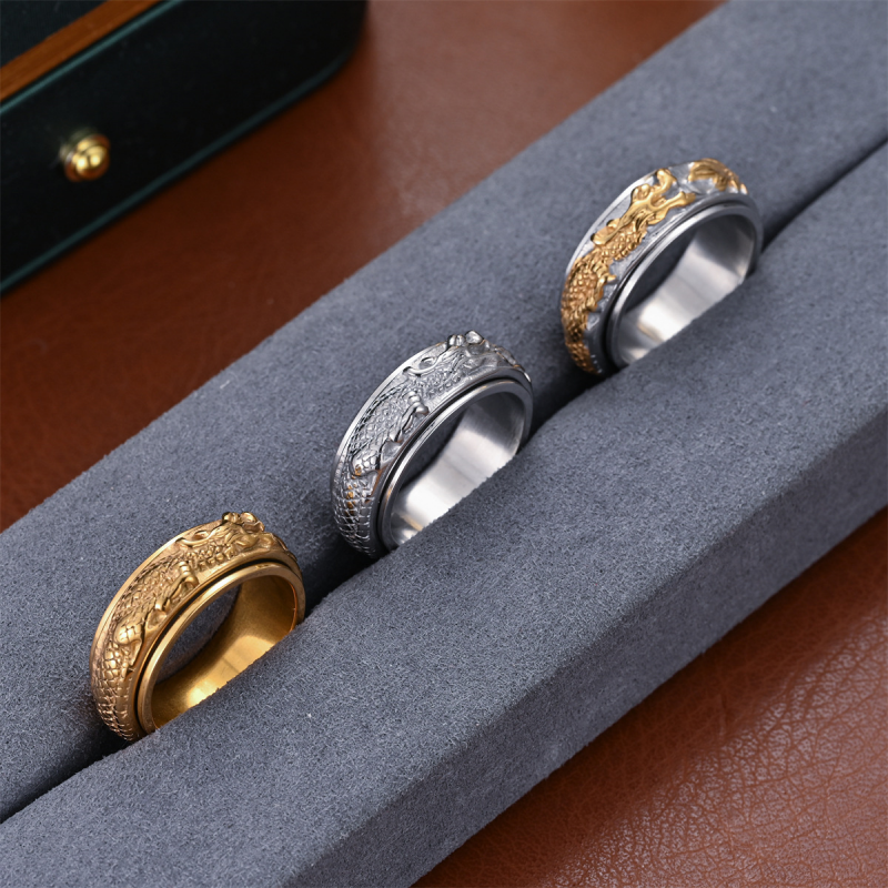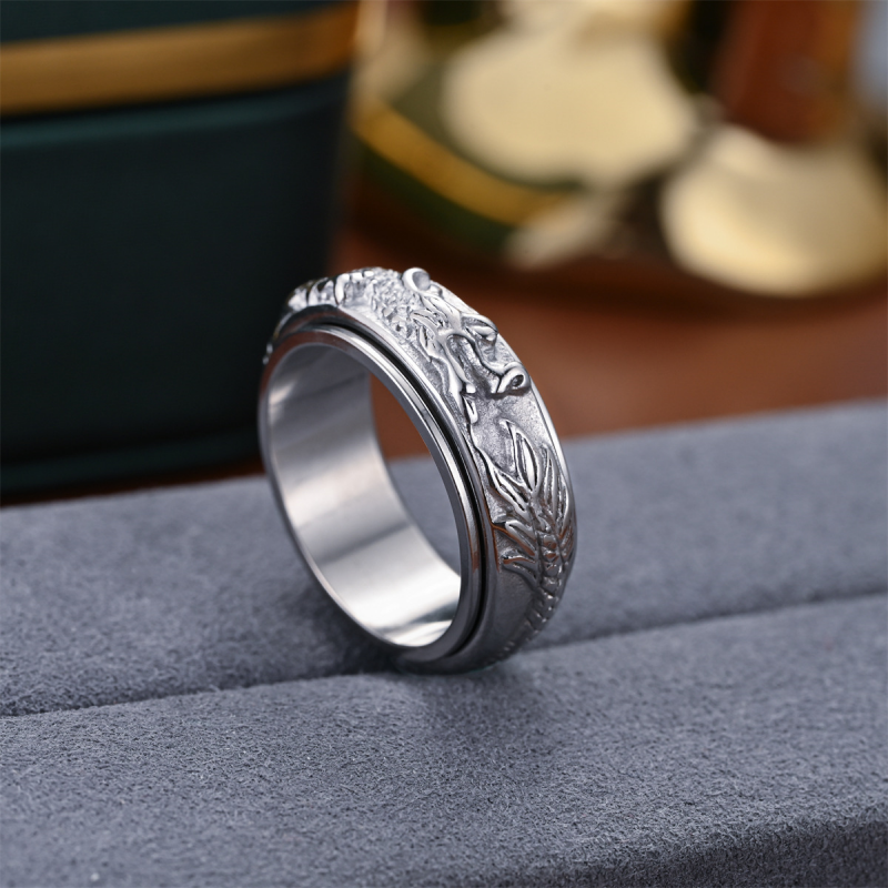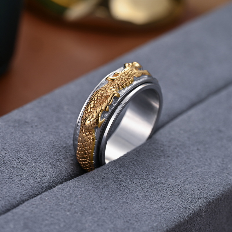 Der Ring im Retro-Stil mit Drehdesign kombiniert eine Dreieckspyramide und das Auge Gottes. Die Drehbewegung lindert Zappelgefühle, und das Symbol steht für Schutz. Die Used-Optik verleiht ihm einen Vintage-Touch – perfekt für alle, die einzigartige, interaktive Accessoires lieben.