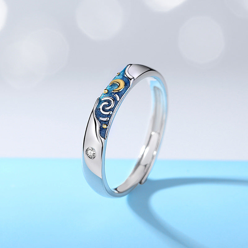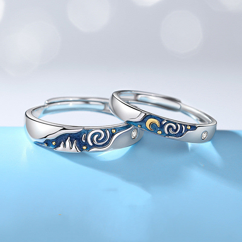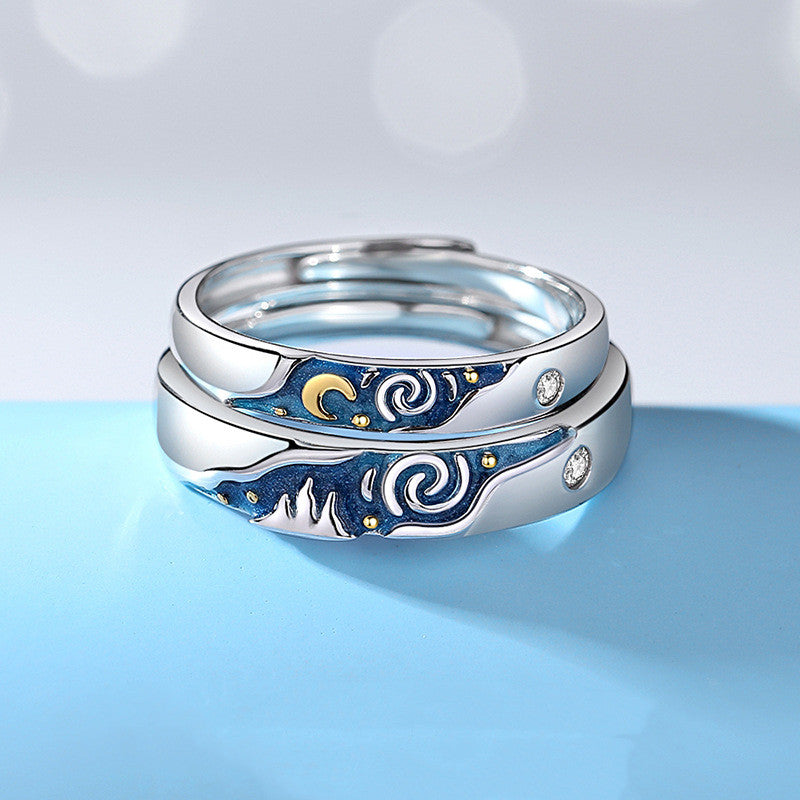 Enamel Starry Night Matching Couple Ring