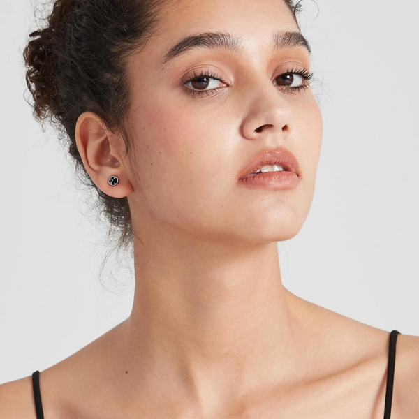 Tiny Small Black Agate Star Stud Earrings