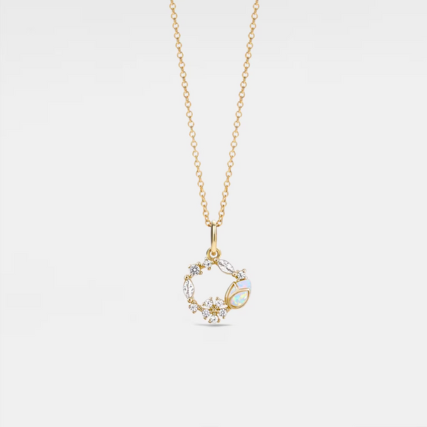 Opal Tulip Flower Circle Charm Necklace