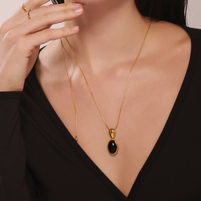 Embrace the vintage allure of our cat's eye necklace. Each piece features an oval cat's eye stone with a lush, velvet-like luster that shimmers with subtle depth, blending classic charm with timeless elegance. The retro-inspired design evokes a sense of nostalgic sophistication.