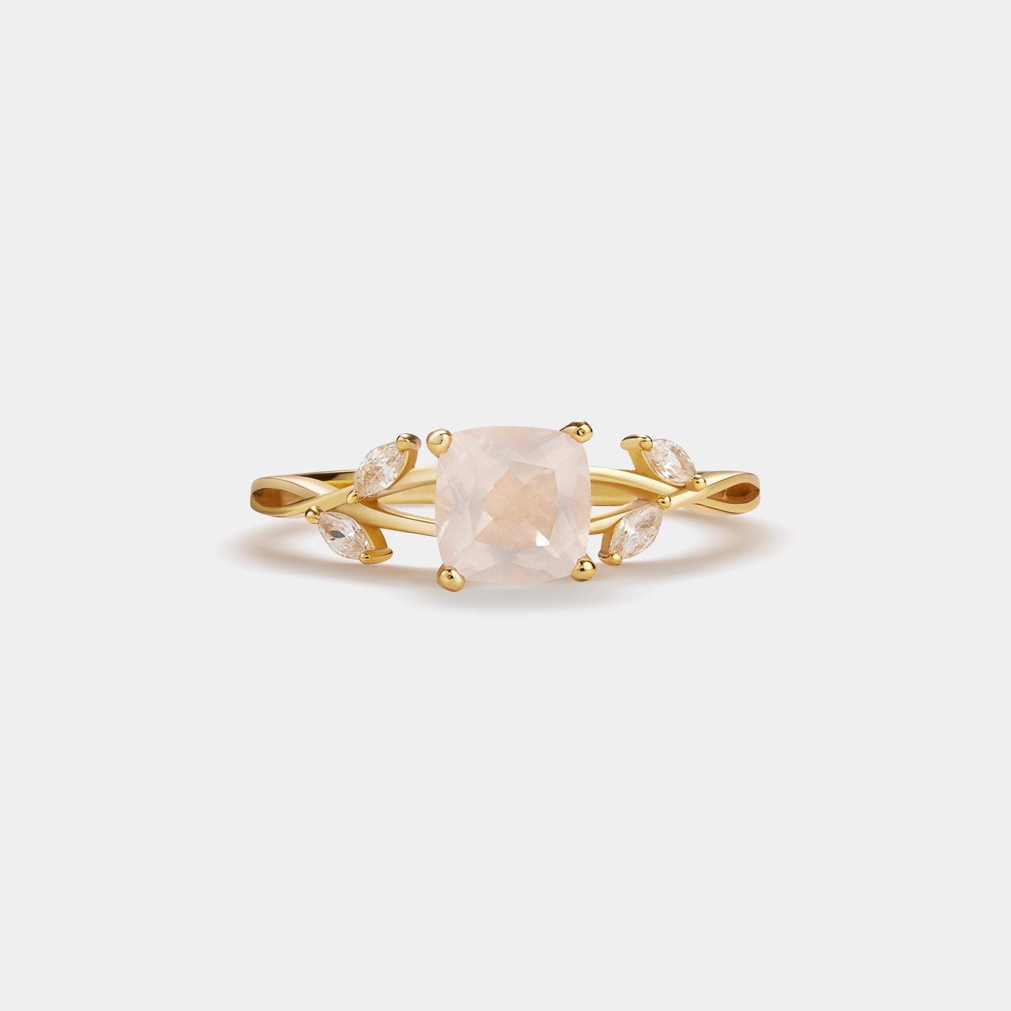 Rose Quartz Leaf Stacking Statement Ring