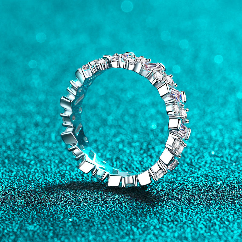 • Dimensions: 2.53 ct, Color D, VVS1 Moissanite, US size 4 1/2 - 10 available