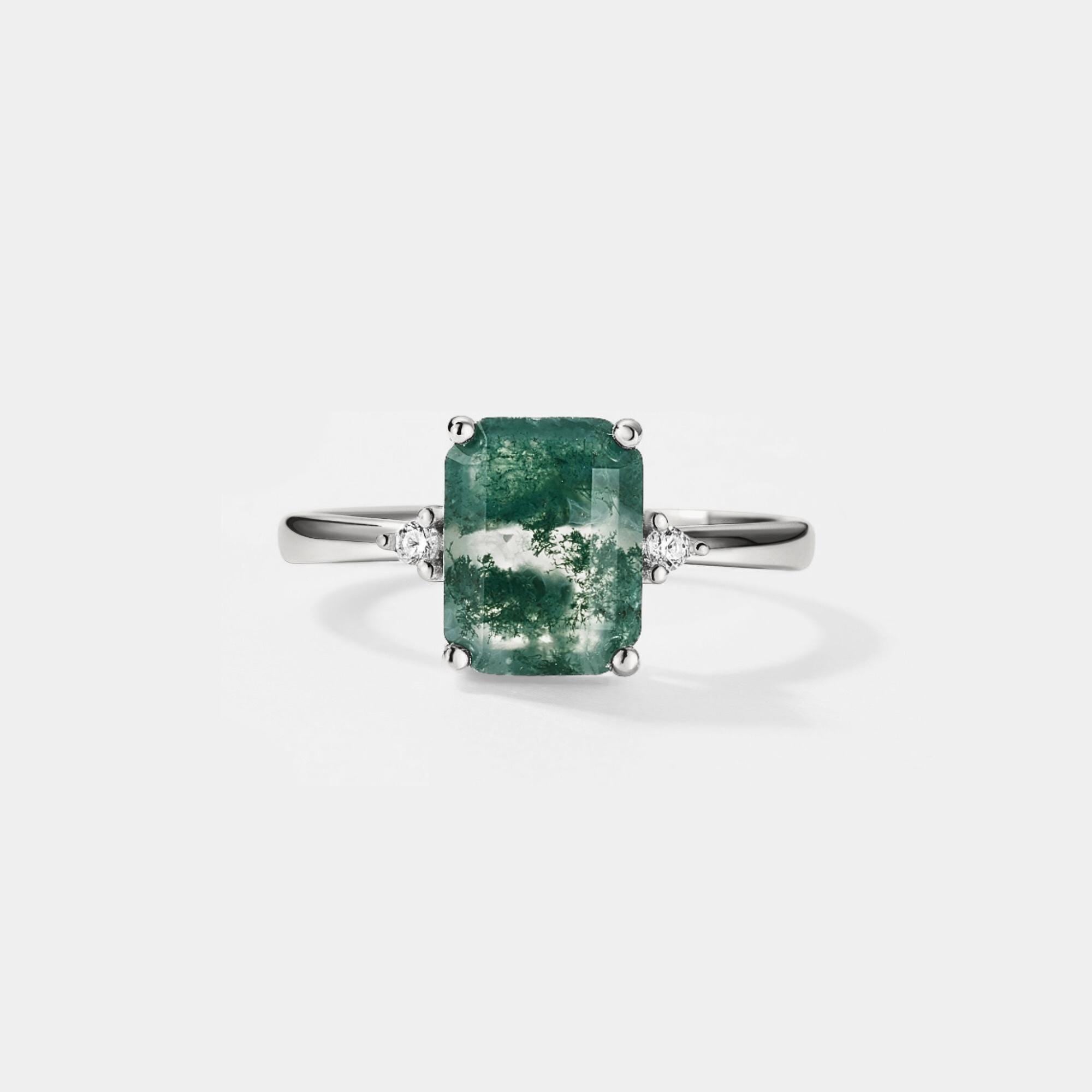 • Material: Solid 925 Sterling Silver ∙ Natural Moss Agate ∙ Cubic Zirconia