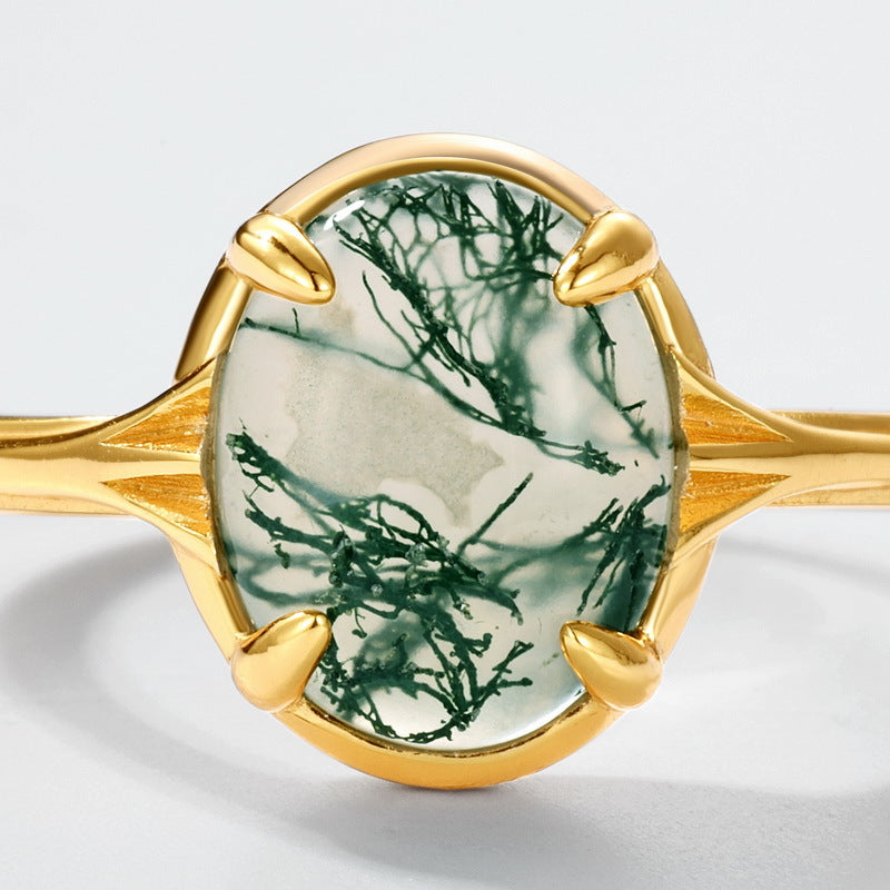 Oval Moss Agate Cabochon Statement Ring