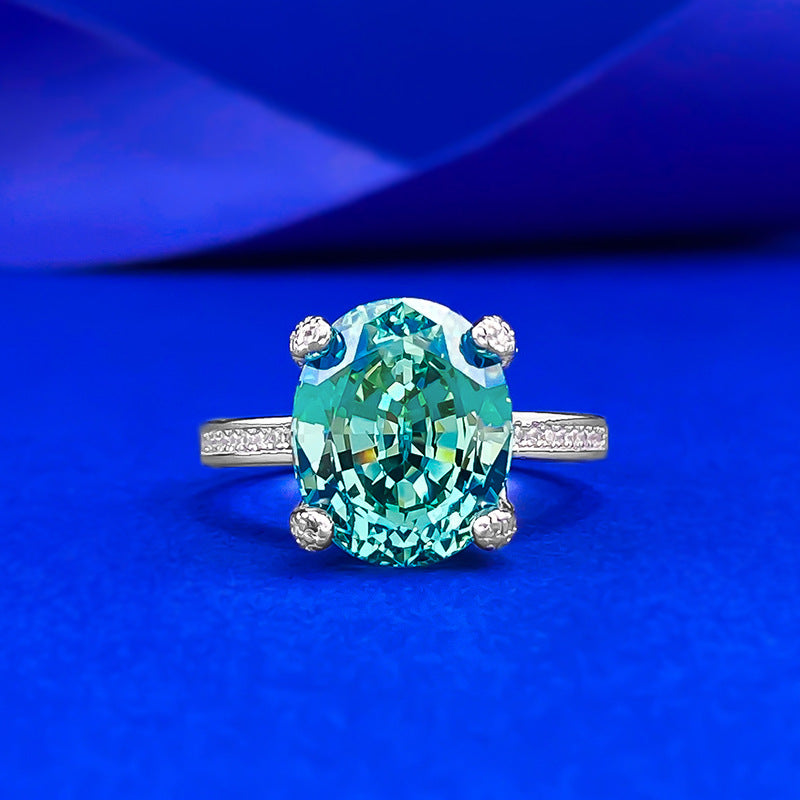 This stunning ring features a vibrant, oval-cut teal-green gemstone in a four-prong setting to showcase its brilliance. Accented with sparkling diamonds on the sides and a pavé diamond band, it creates a bold yet elegant statement piece, perfectly blending modern design with timeless luxury.