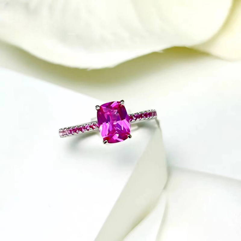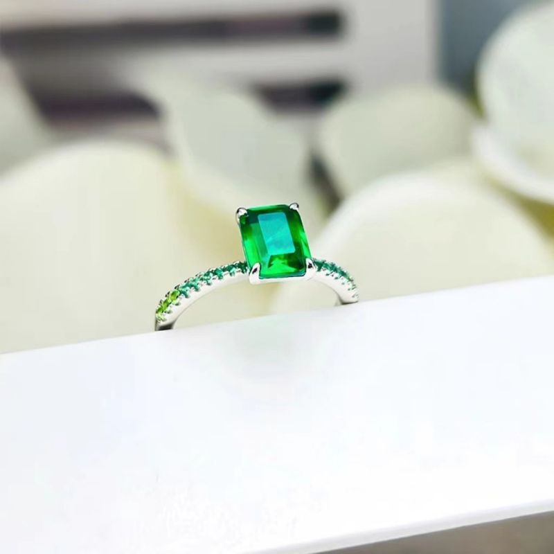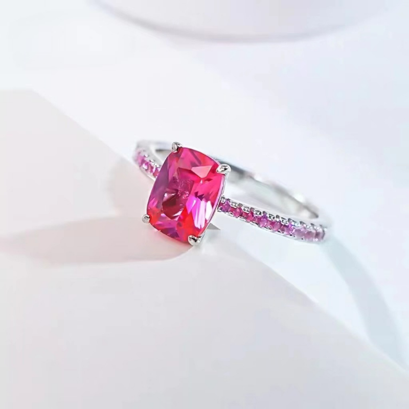 Exuding romance, this captivating ring features a brilliant Emerald-cut gemstone. The classic four-prong setting is complemented by a sparkling pavé gemstone shoulder, creating a sophisticated, feminine charm. It’s a timeless and elegant statement piece, perfect for any modern jewelry collection.