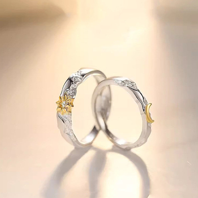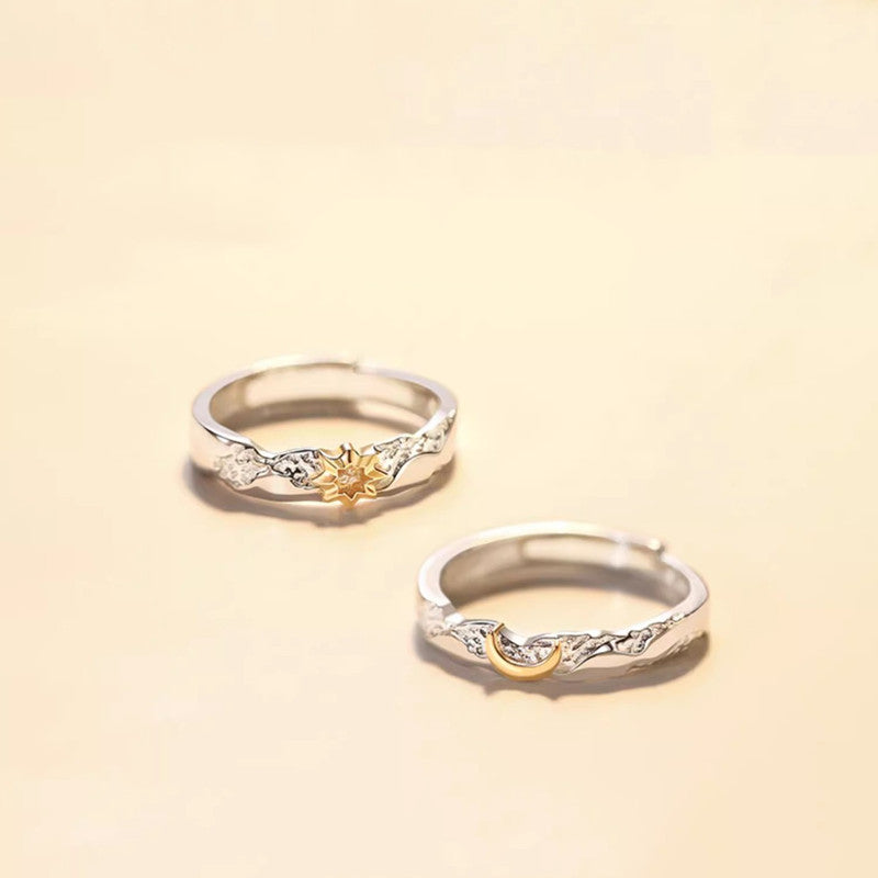 Gold Sun Moon Matching Couple Ring