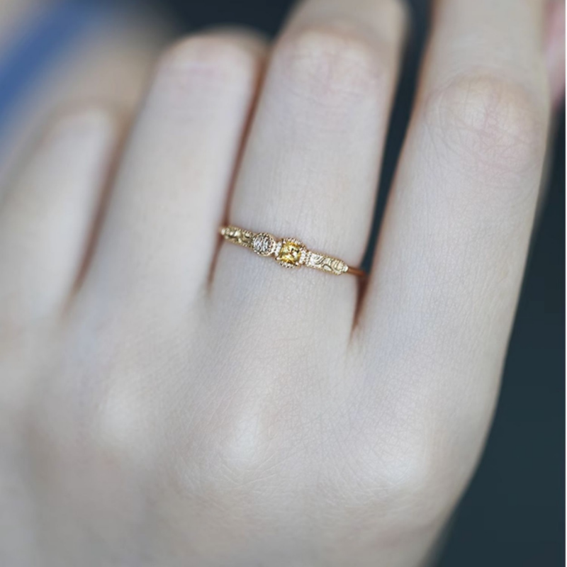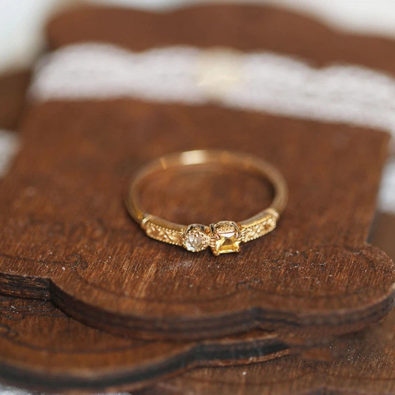This elegant ring features a rose-cut citrine, radiating a warm, soft glow. Encircled by sparkling white topaz, it enhances the delicate appeal. The gold-plated band adds a touch of luxury, creating a perfect light-luxury piece for everyday sophistication and special occasions.