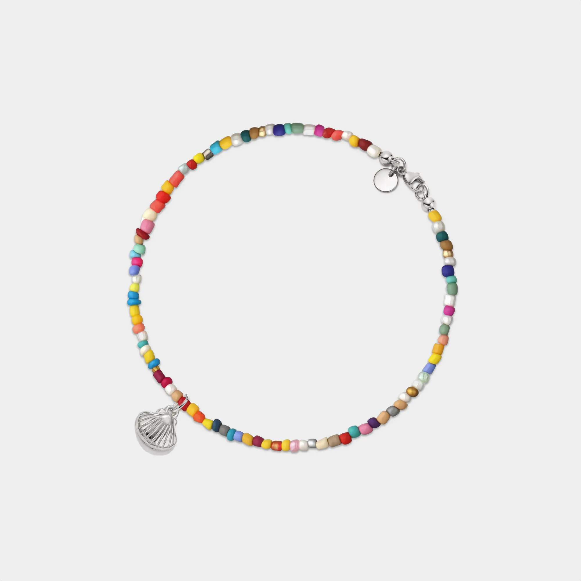 Seashell Charm Boho Rainbow Bead Anklet