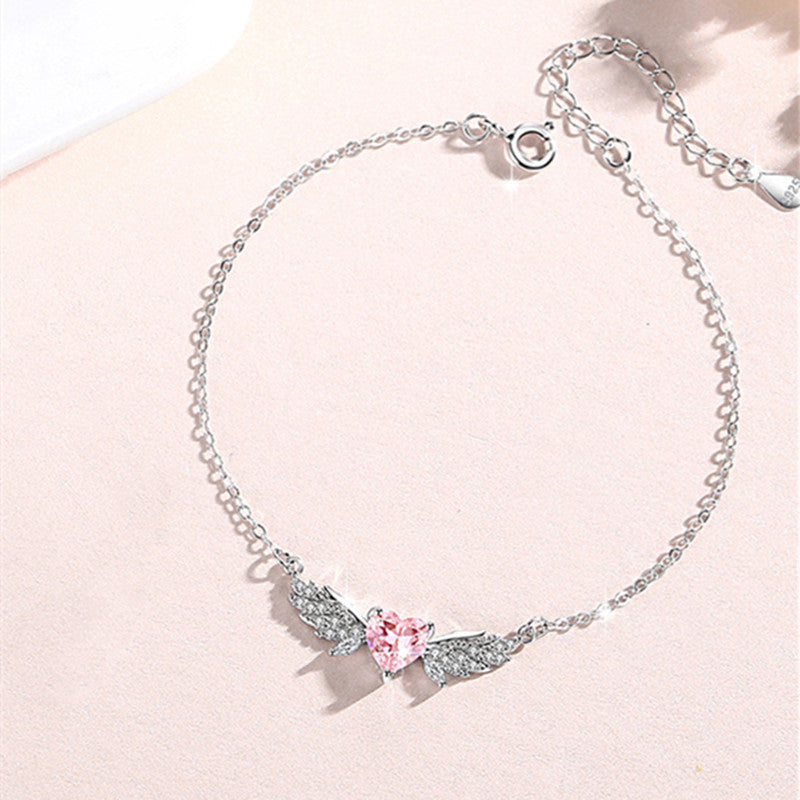 Pink Heart Angel Wing Charm Bracelet