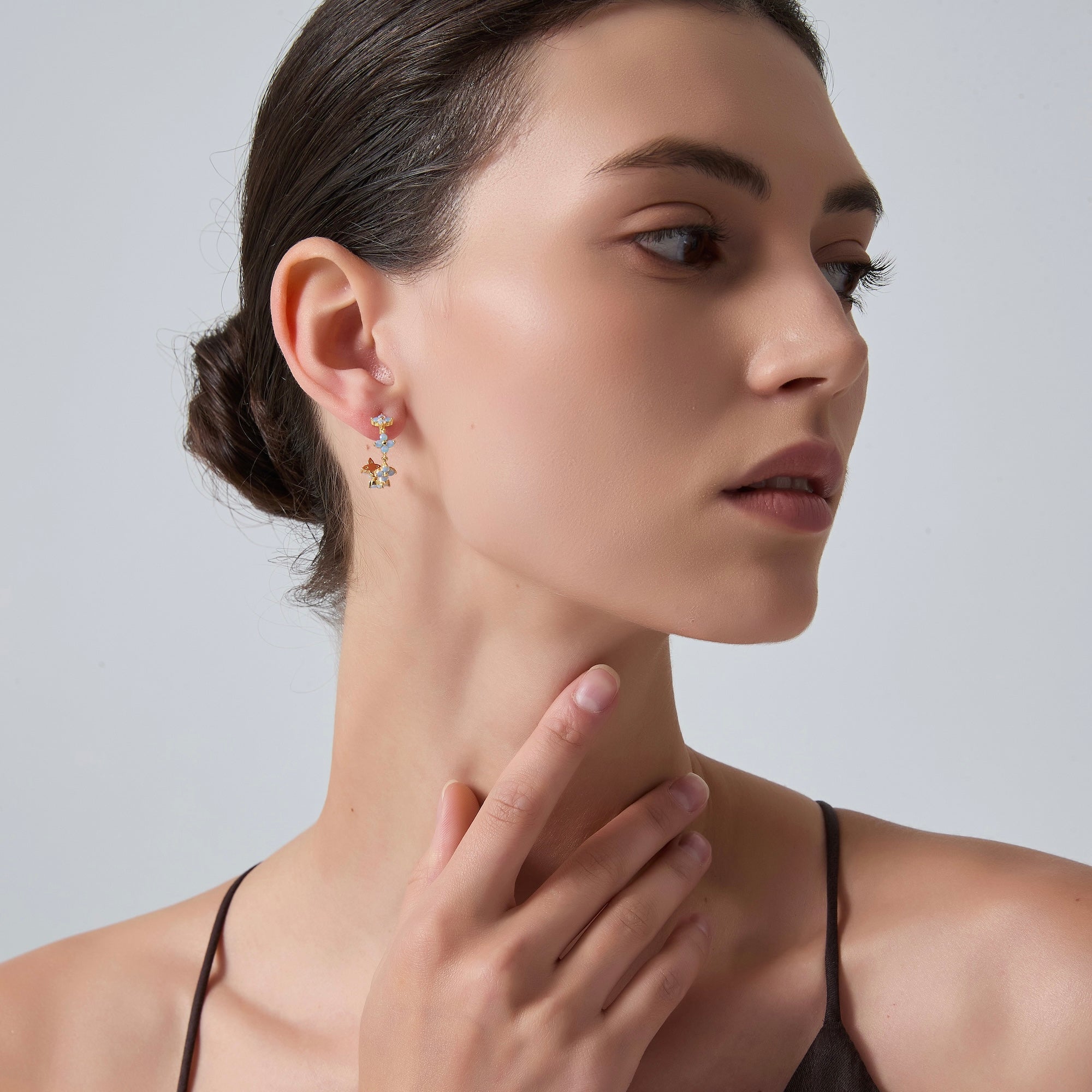 Flower earrings are a symbol of love and hope, representing elegance, simplicity and purity. This simple earring with blue flowers makes you more beautiful and natural.