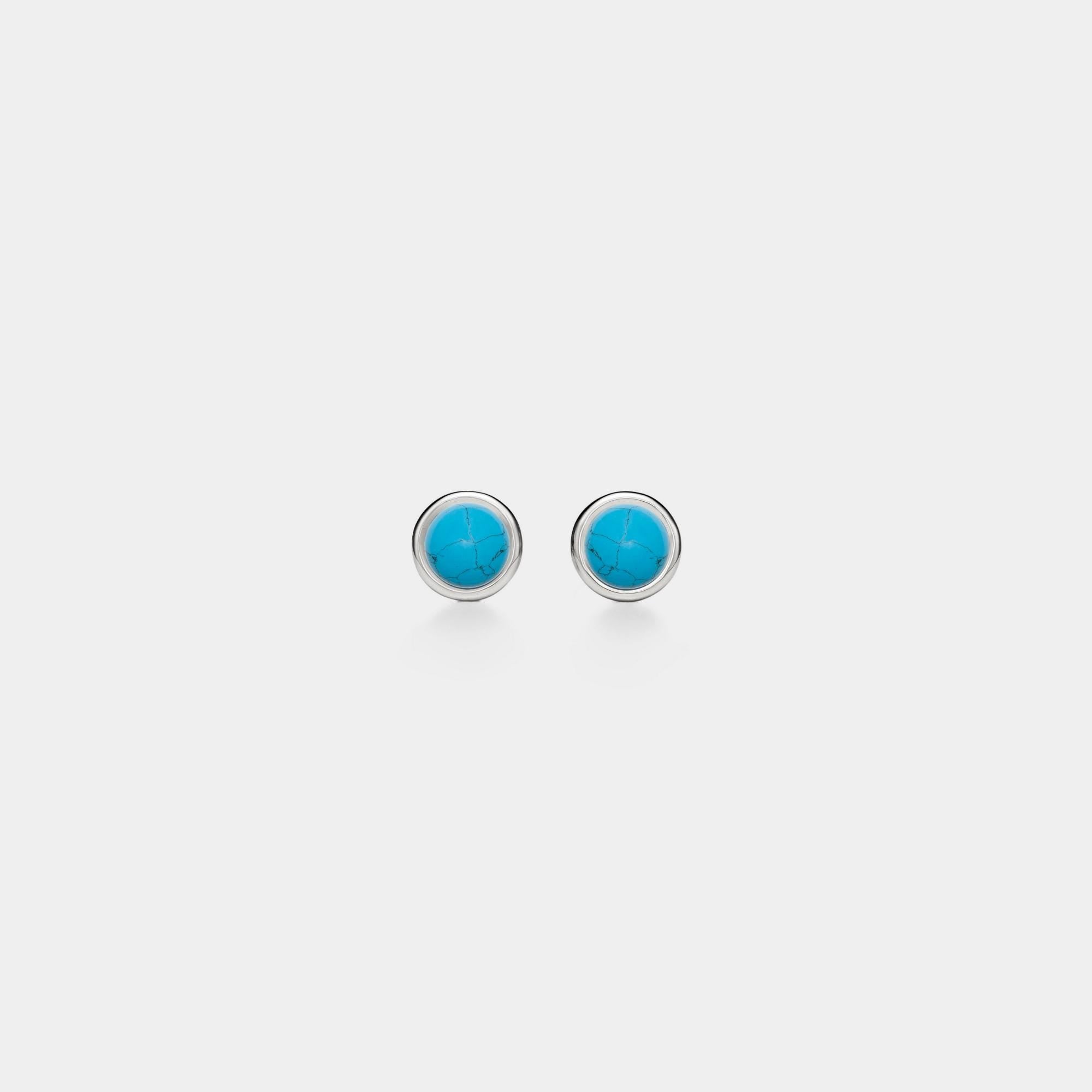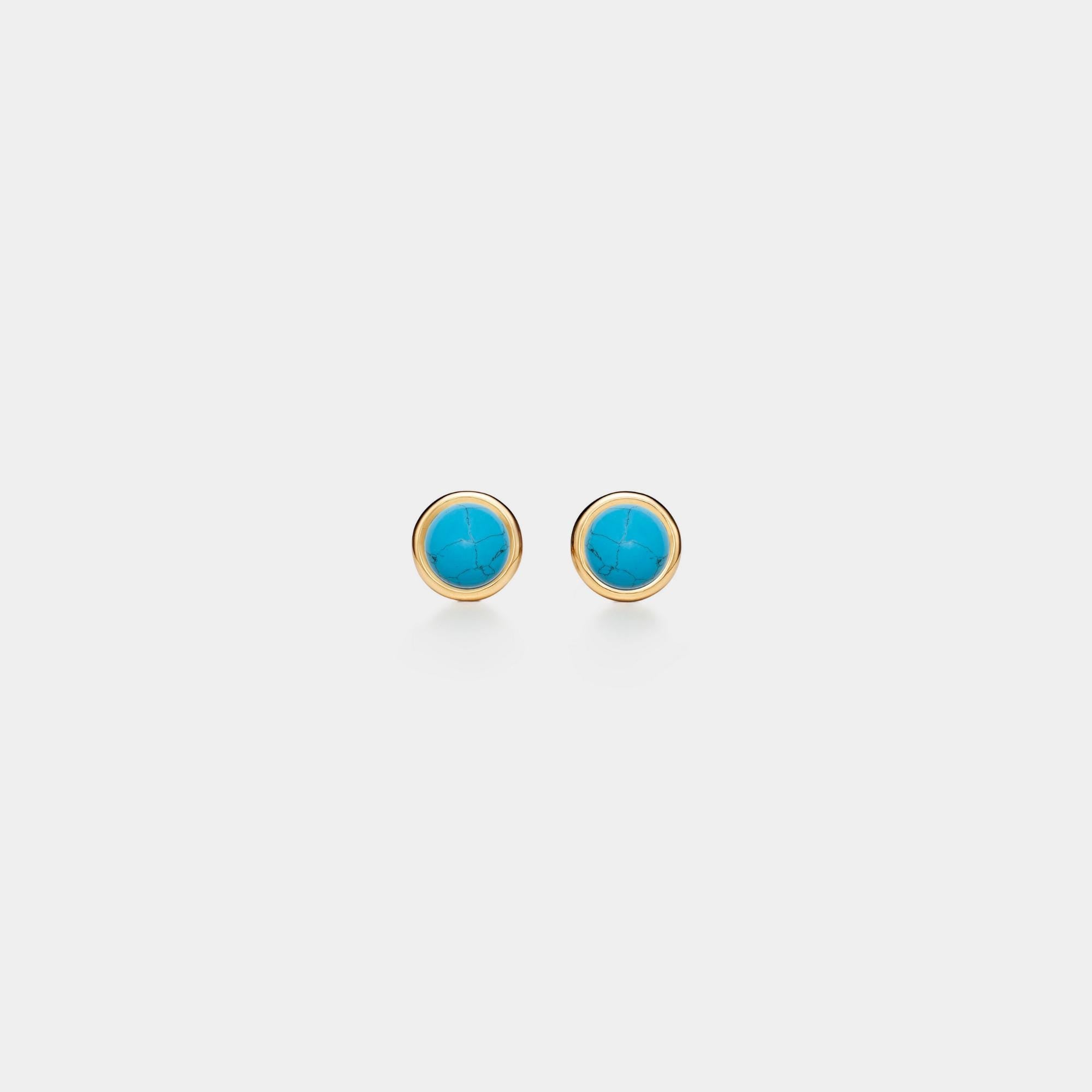 Blue Turquoise Cabochon Stud Earrings