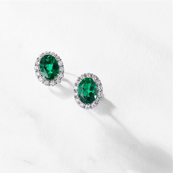 Oval-Cut Emerald Halo Wedding Stud Earrings