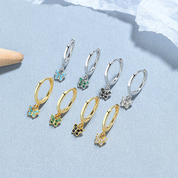 Color Butterfly Dangle Drop Hoop Earrings