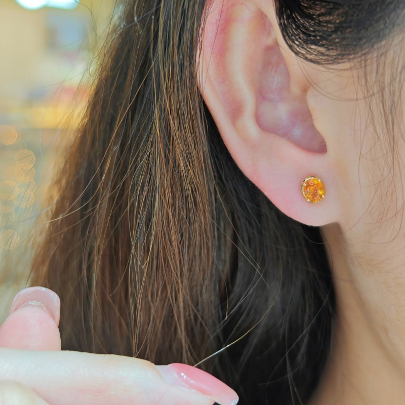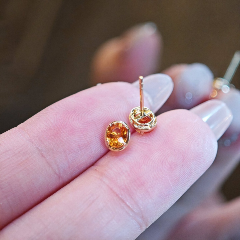 Bezel Setting Orange Gemstone Stud Earrings