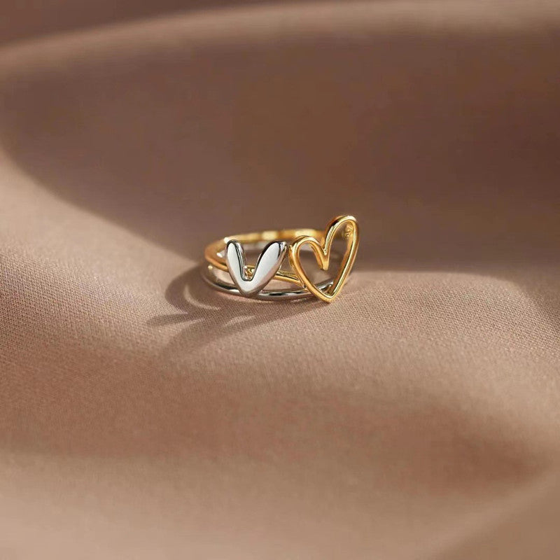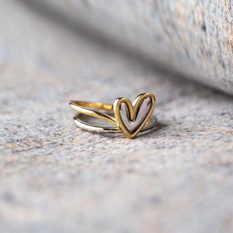 Irregular Two Tone Heart Stacking Ring