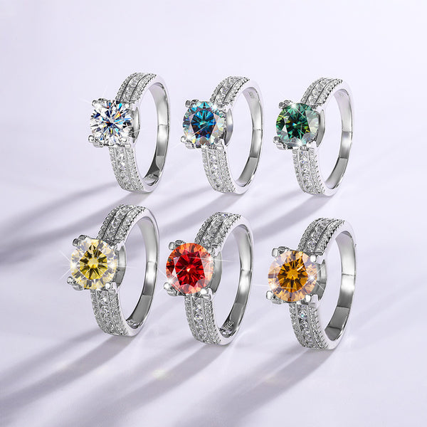 Round Color Moissanite Pave Engagement Ring