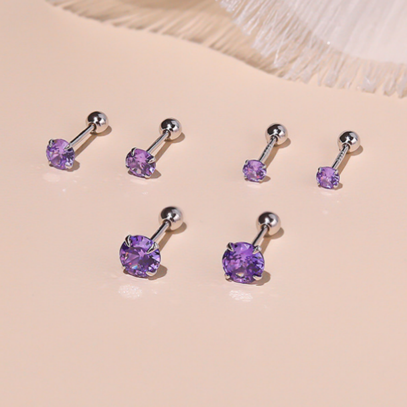 Minimalist Four Prong Round Gemstone Stud Earrings