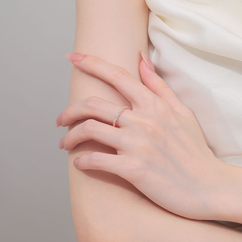 • Dimensions: 0.12 ct, Color D, VVS1 Moissanite, US size 4 1/2 - 9 available