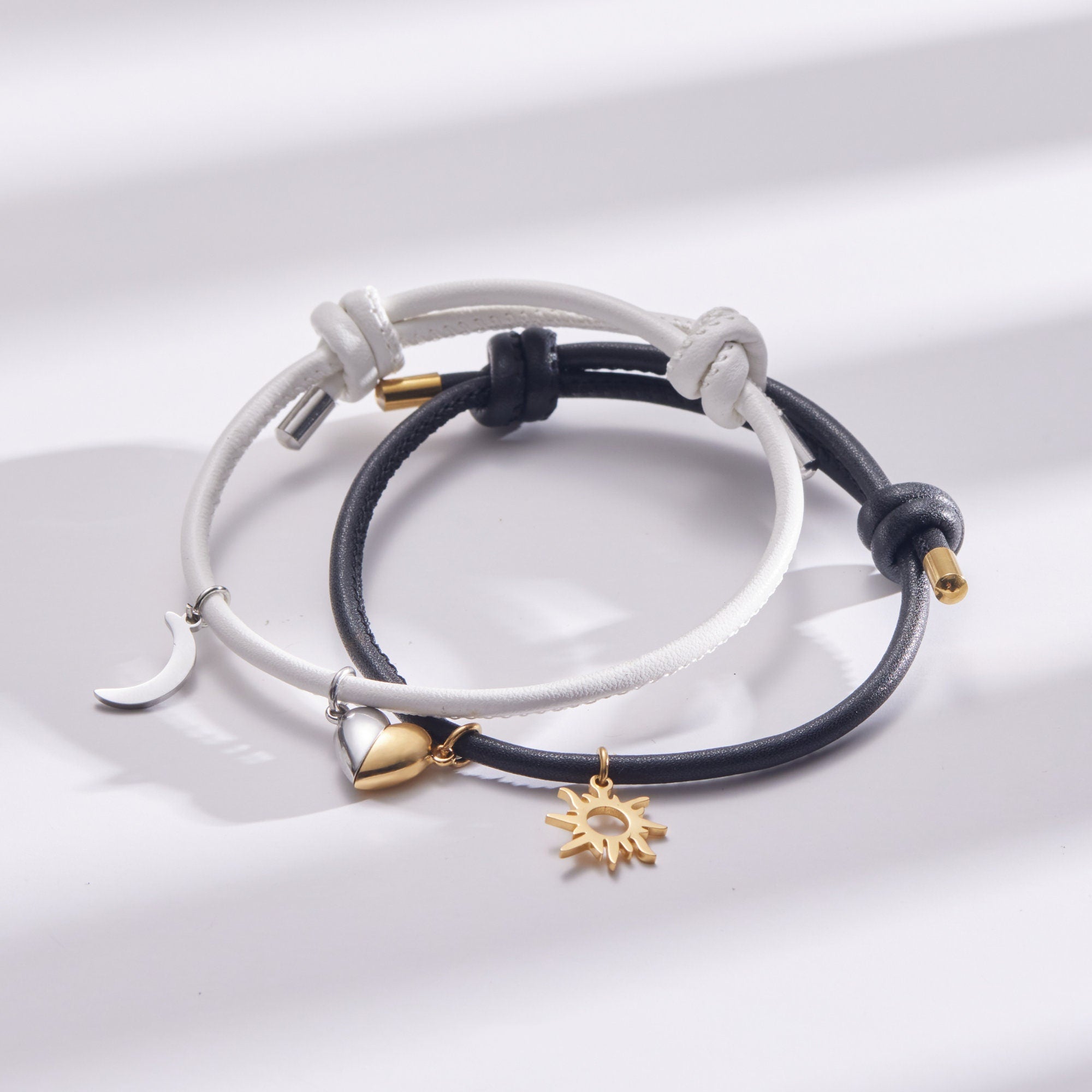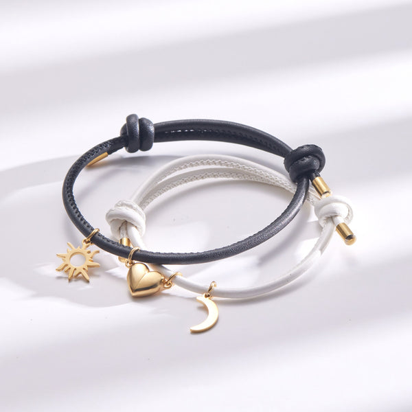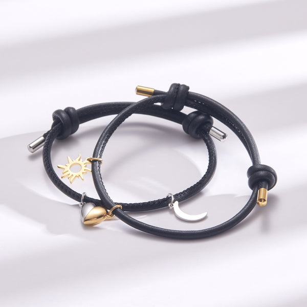 Magnetic Heart Sun Moon Couple Rope Bracelet