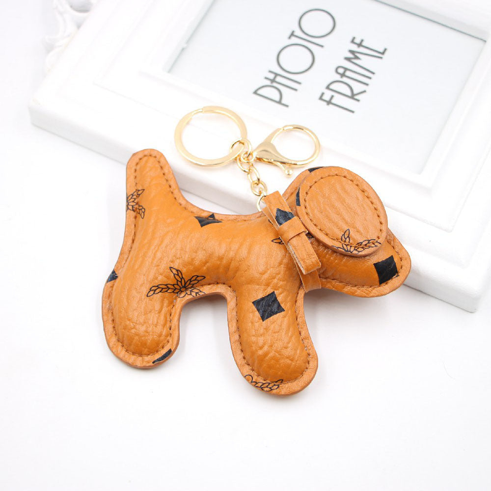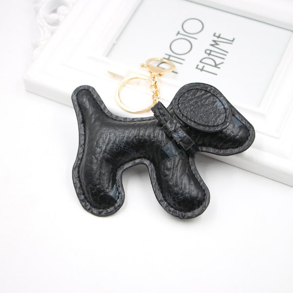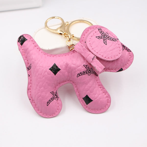 Leather Puppy Dog Car Bag Charm Keychain