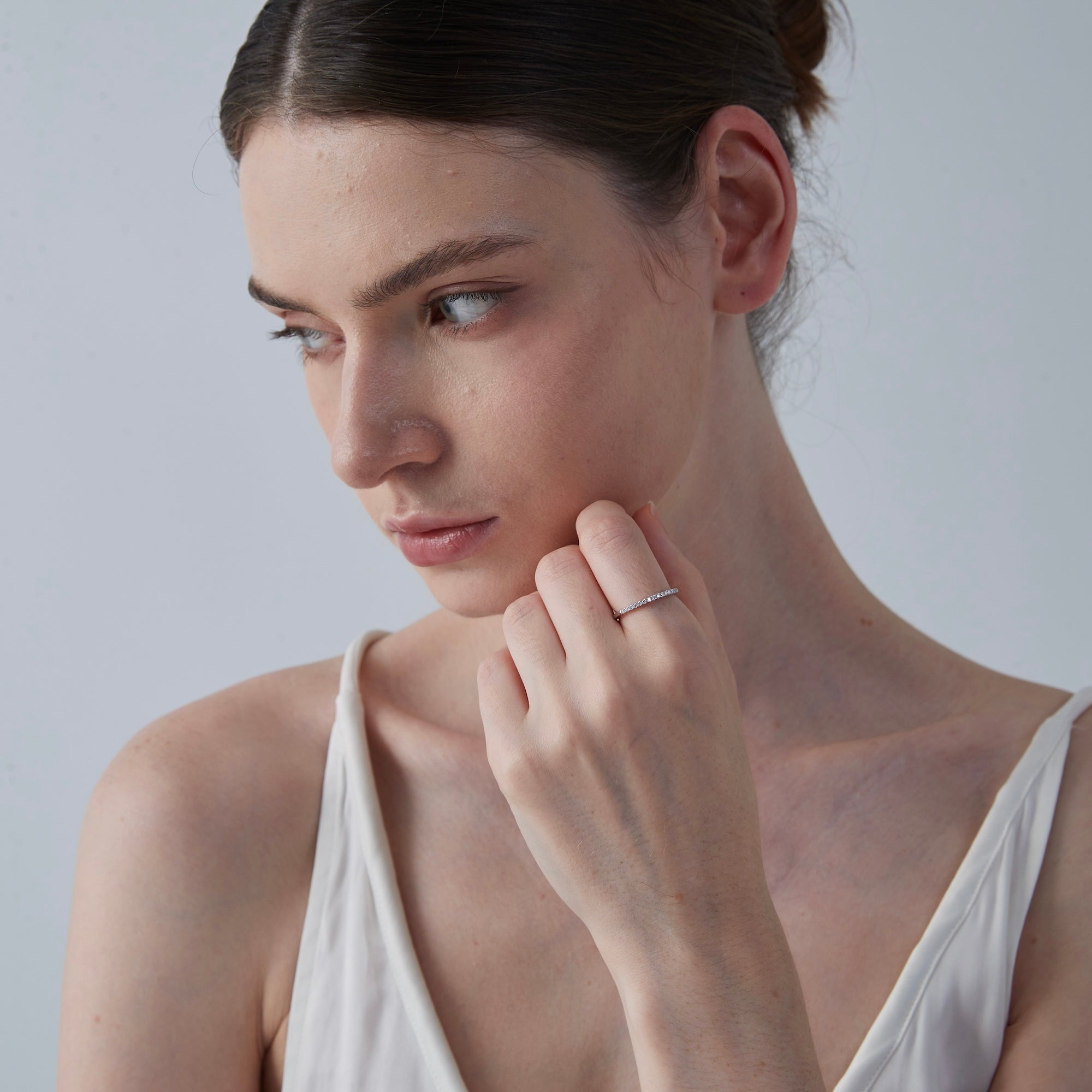 • Dimensions: 0.15 ct, Color D, VVS1 Moissanite, US size 4 1/2 - 9 available