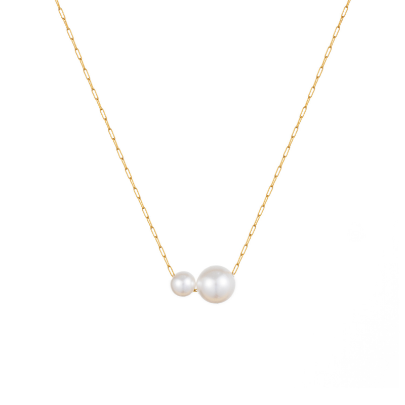 Gold Double Pearl Charm Necklace