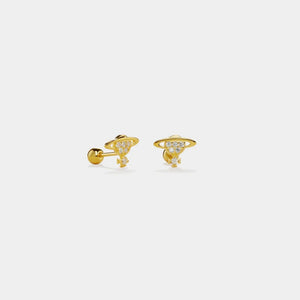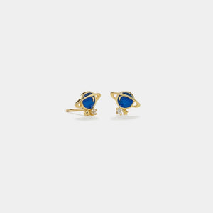 Small Blue Planet Saturn Star Stud Earrings