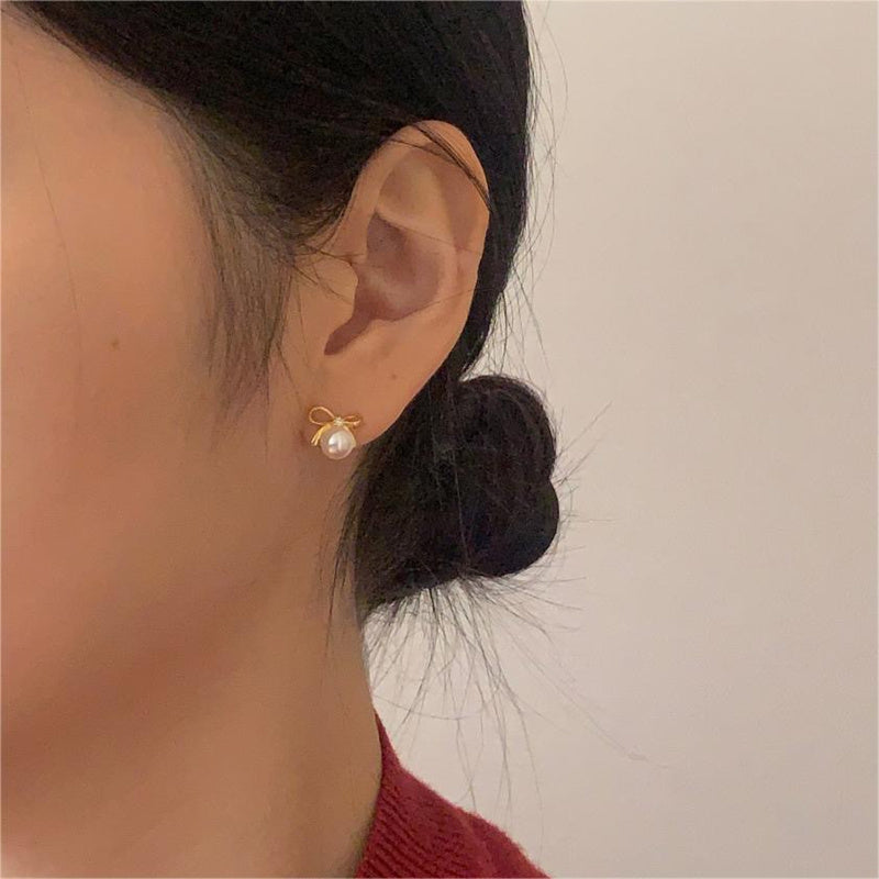 Tiny Small Pearl Bow Wedding Stud Earrings