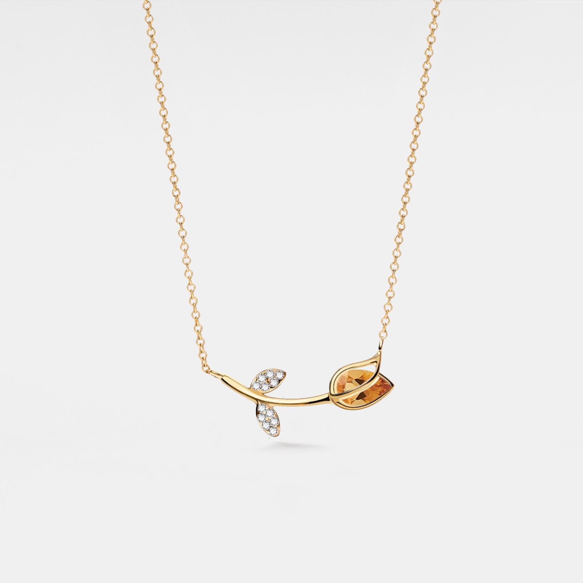 Orange Citrine Tulip Flower Charm Necklace