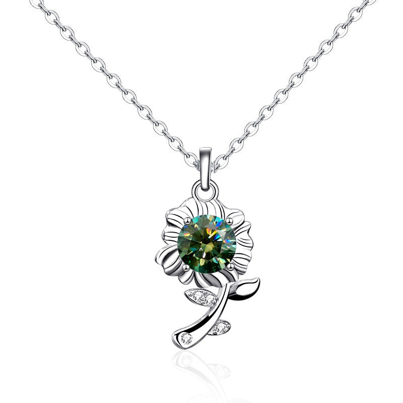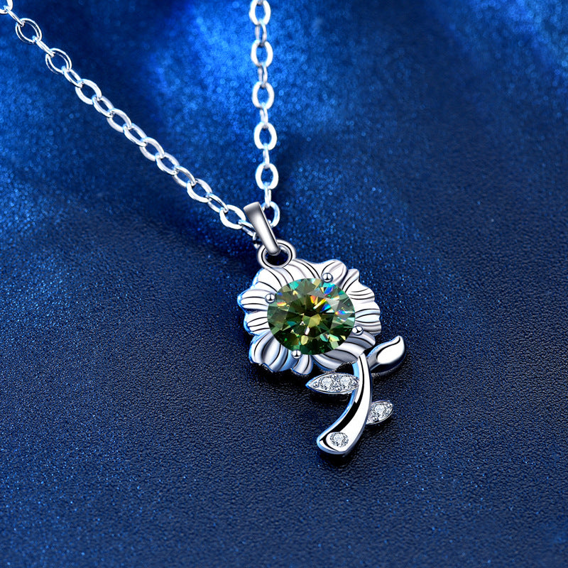 Color Moissanite Sunflower Charm Necklace