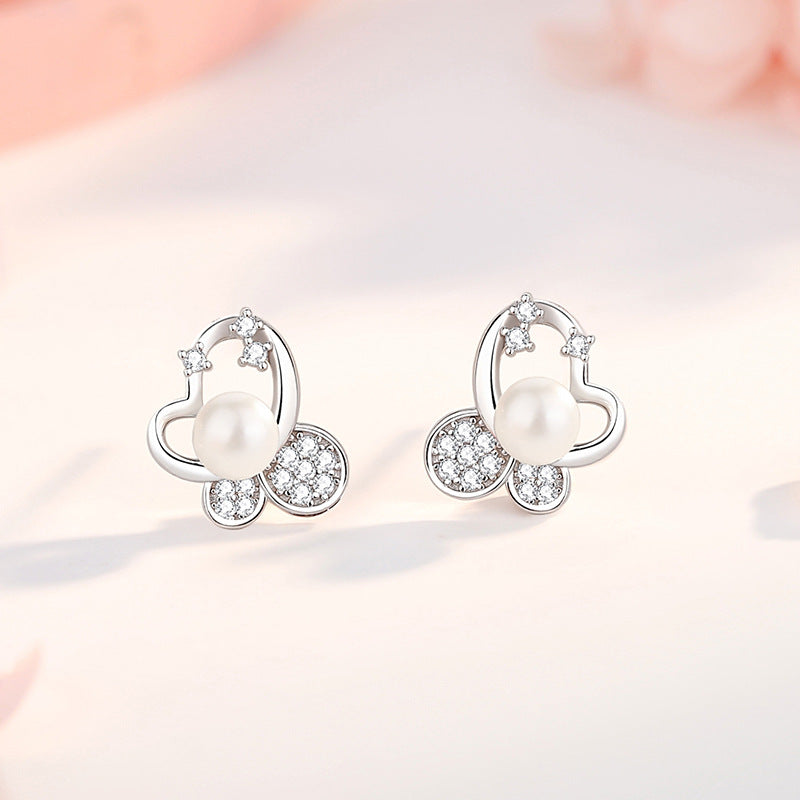Dainty Pearl Butterfly Wedding Stud Earrings