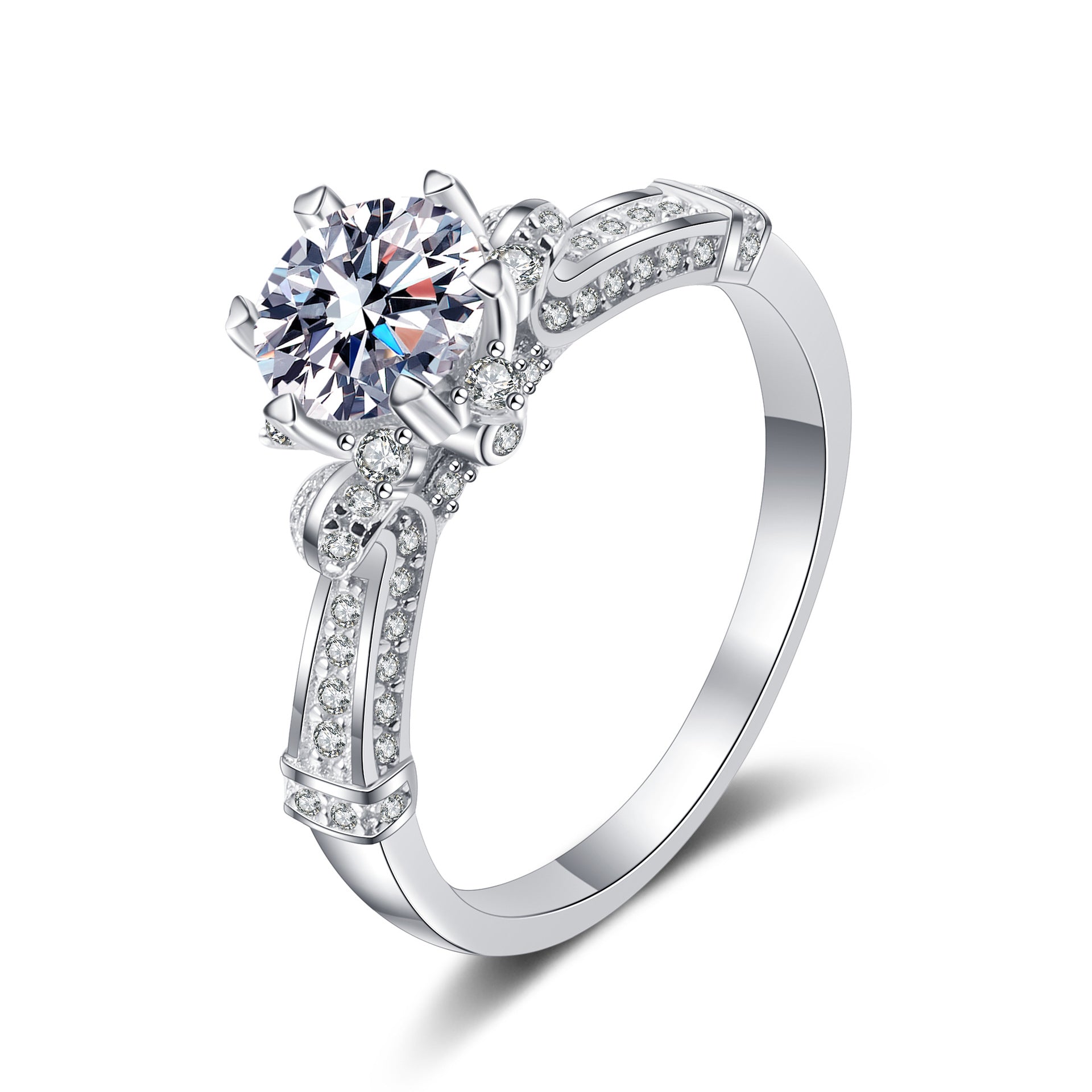Six-Prong Round Moissanite Engagement Ring