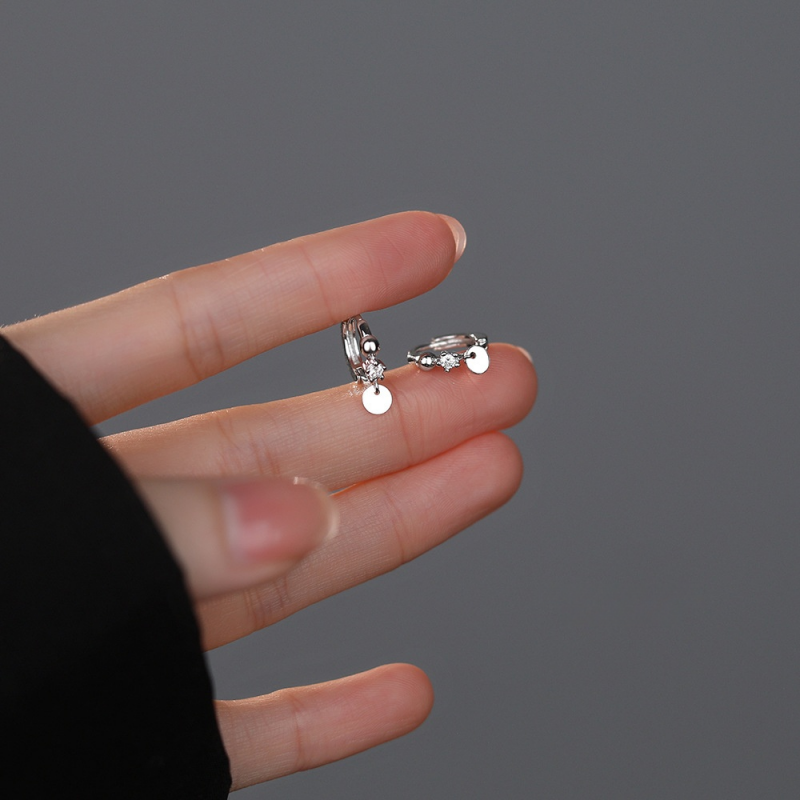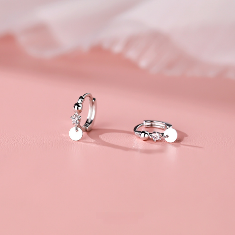 Tiny Round Disc Huggie Hoop Earrings
