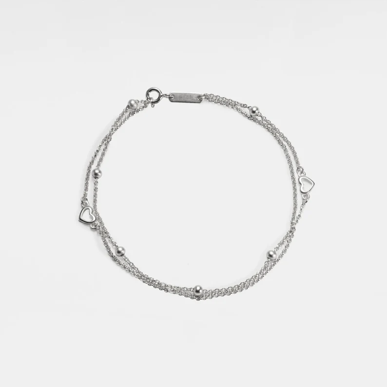 Heart Bead Double Chain Charm Anklet