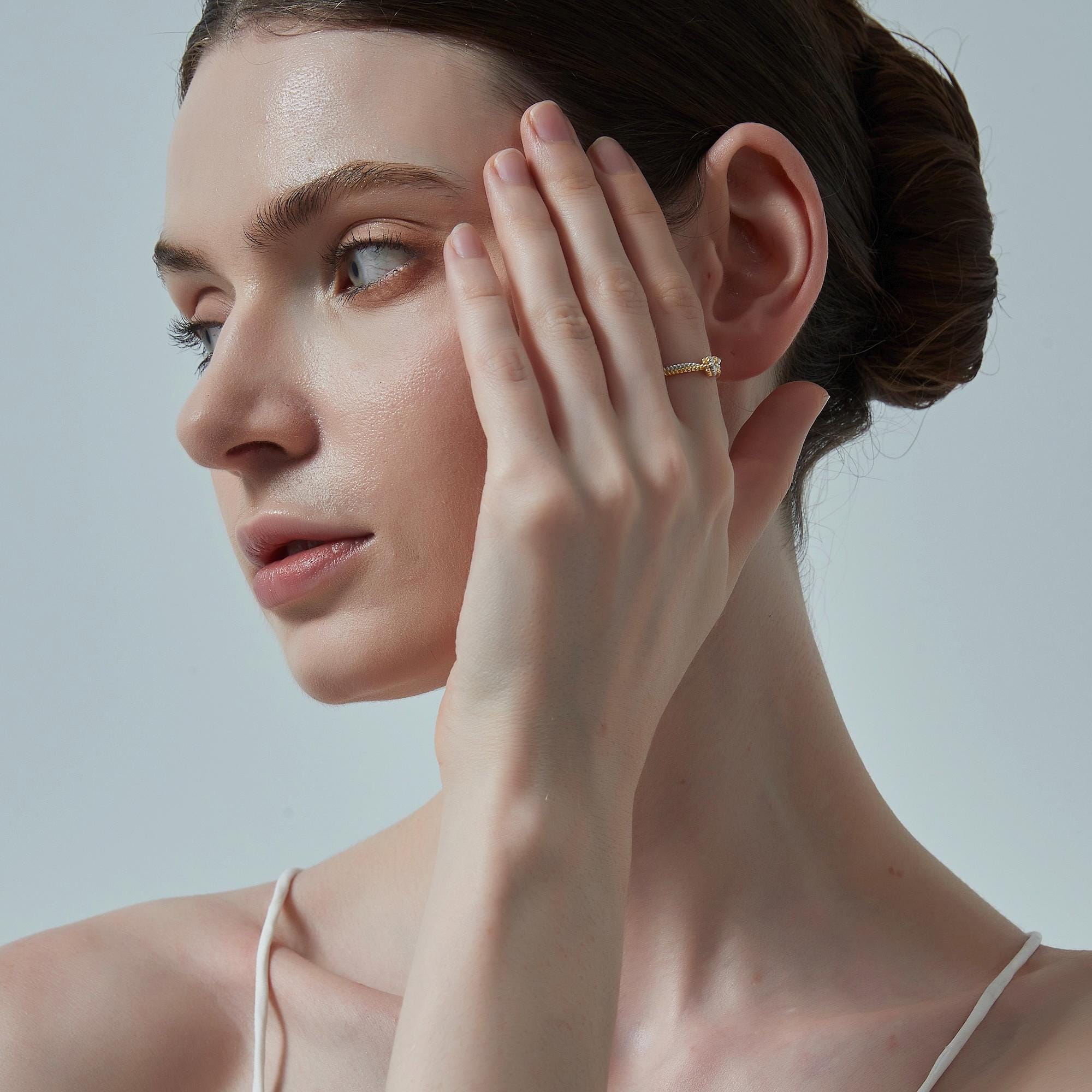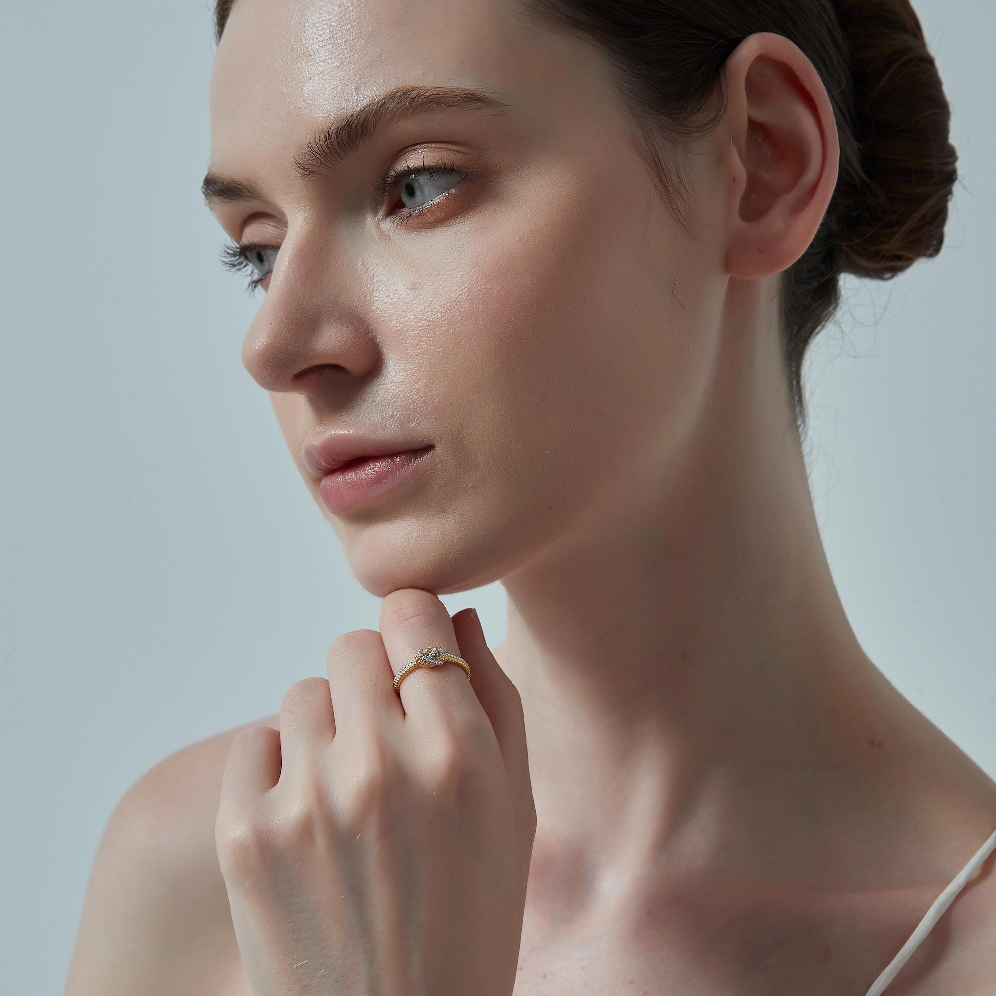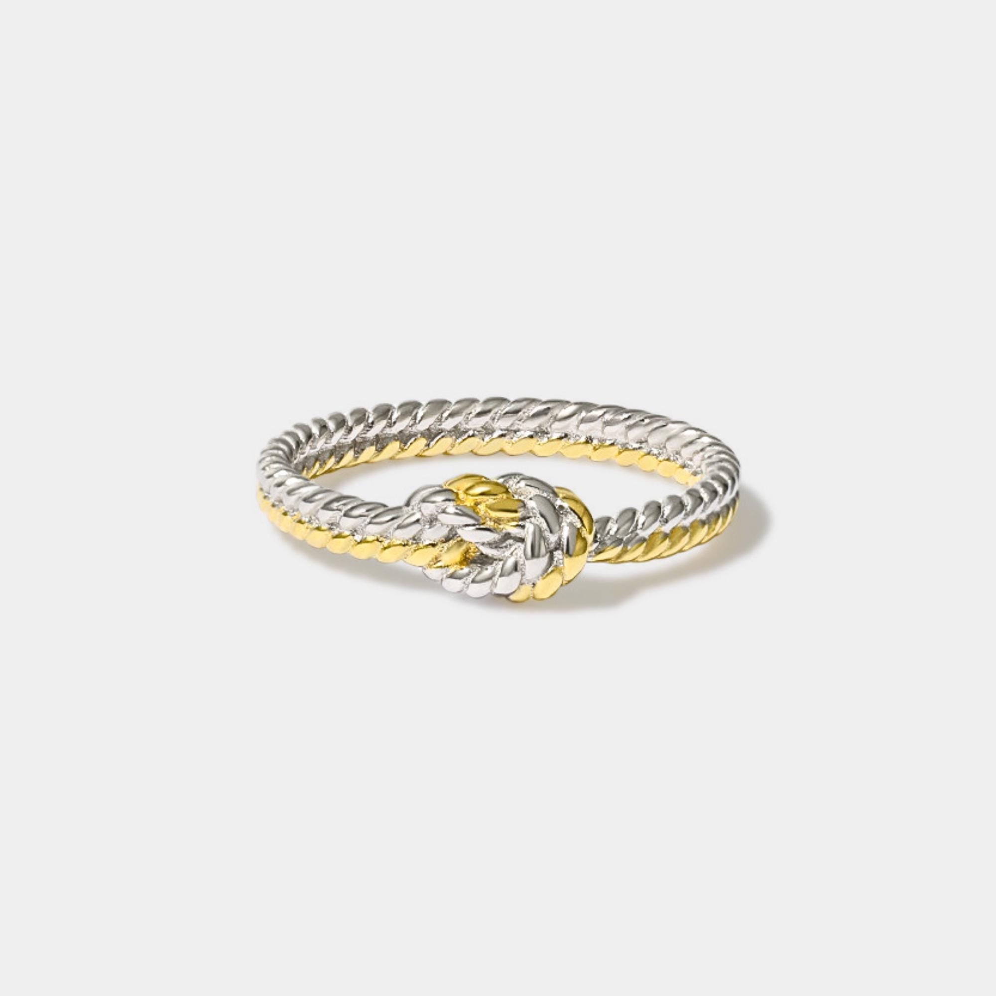 The band mimics the texture of a braided rope, and the central knot detail symbolizes unity, strength, and connection. The mixed-metal style adds versatility, making it easy to pair with other jewelry. It's a timeless and elegant piece, perfect for both everyday wear and meaningful gifting.
