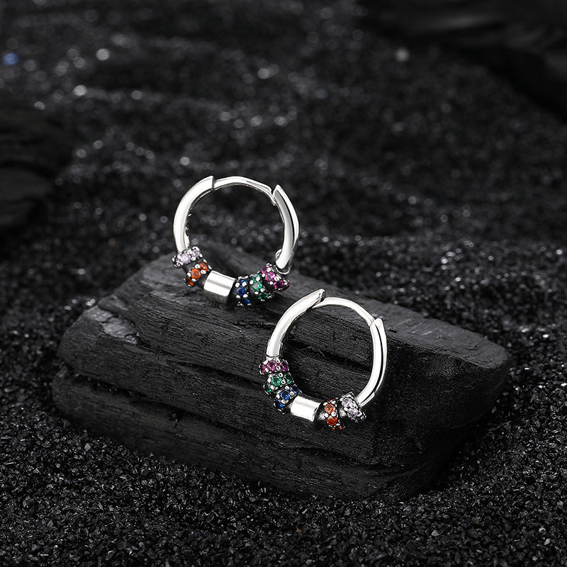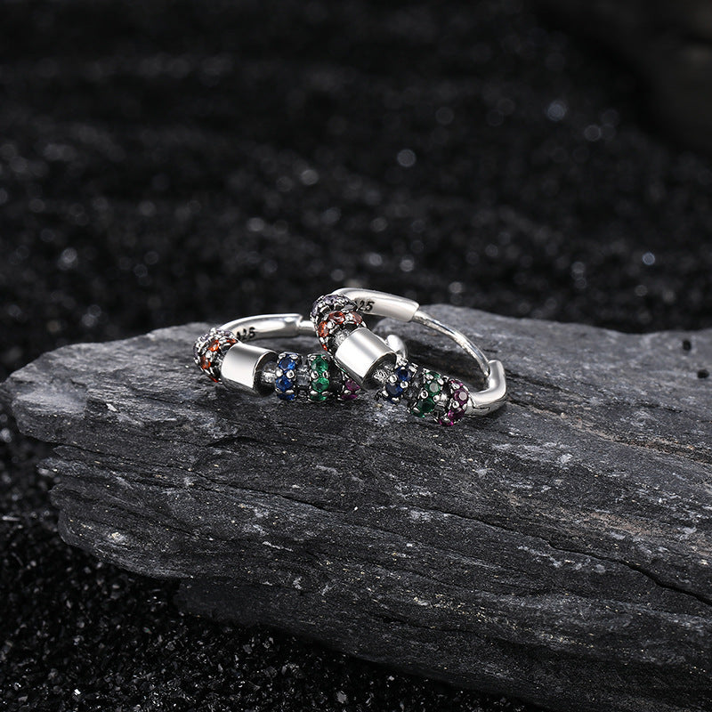 Colorful Rainbow Bead Huggie Hoop Earrings